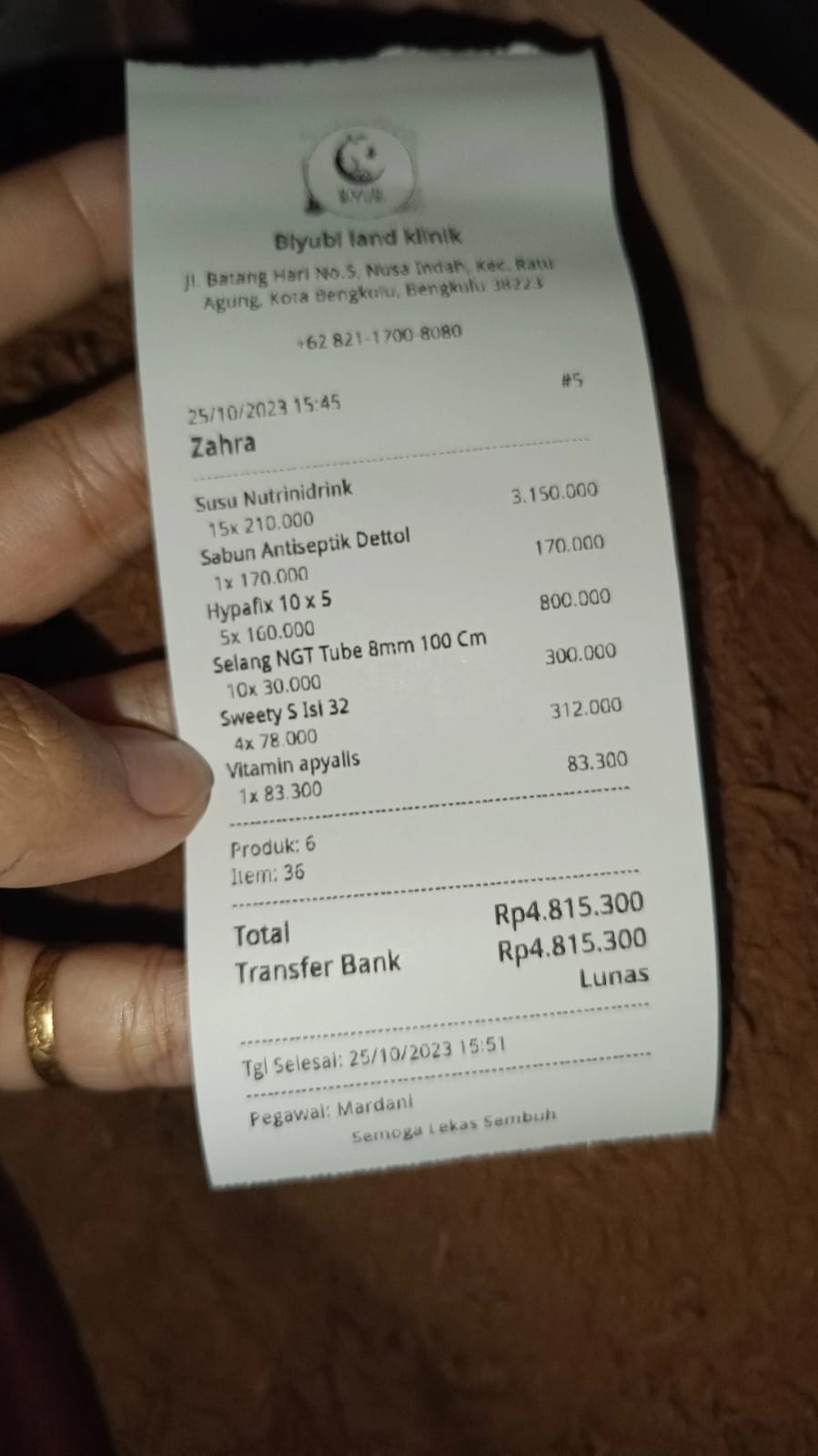 Seluruh bantuan yang diberikan untuk anakku terima sudah digunakan untuk membeli susu khusus.
