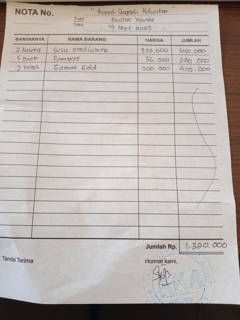 Adapun bantuan dari TemanBaik sudah digunakan dengan baik untuk biaya makan kebutuhan penunjang anakku yang tidak ditanggung oleh BPJS selama di rumah sakit juga di rumah. Juga digunakan untuk biaya pembelian susu formula, suplemen dan juga untuk popok.