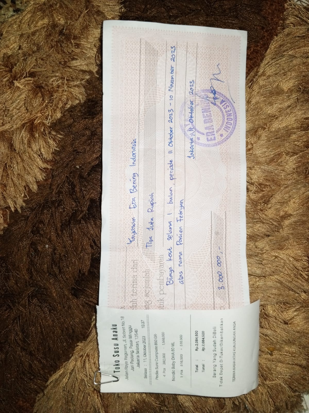 Bantuan dari TemanBaik lewat Dompet Siaga sudah digunakan untuk keperluan biaya kos selama anakku melanjutkan tindakan pengobatan di Jakarta, juga untuk membeli obat, susu dan biaya makan harian.