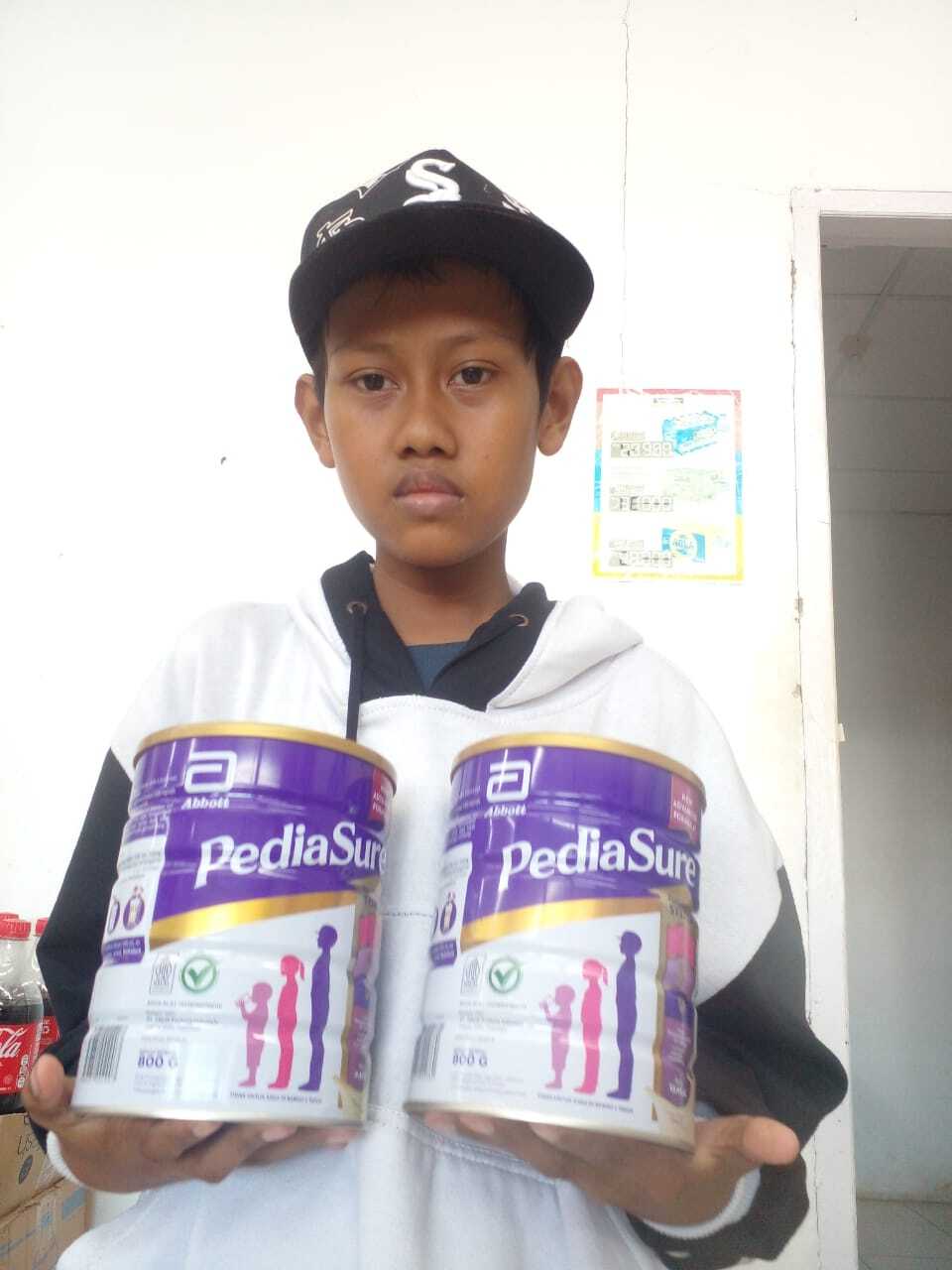 Dana bantuan dari #TemanBaik digunakan untuk pembelian susu sebanyak 2 kaleng.