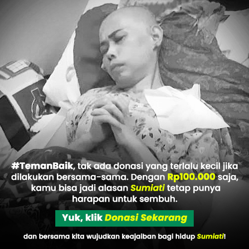 #TemanBaik, tak ada donasi yang terlalu kecil jika dilakukan bersama-sama. Dengan Rp100.000 saja, kita bisa jadi alasan Sumiati tetap punya harapan untuk sembuh. Yuk, klik Donasi Sekarang dan bersama kita wujudkan keajaiban bagi hidup Sumiati!