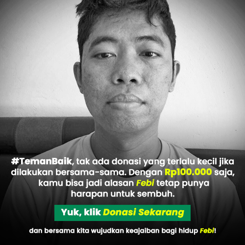 #TemanBaik, tak ada donasi yang terlalu kecil jika dilakukan bersama-sama. Dengan Rp100.000 saja, kita bisa jadi alasan Febi tetap punya harapan. Yuk, klik Donasi Sekarang dan bersama kita wujudkan keajaiban bagi hidup Febi!