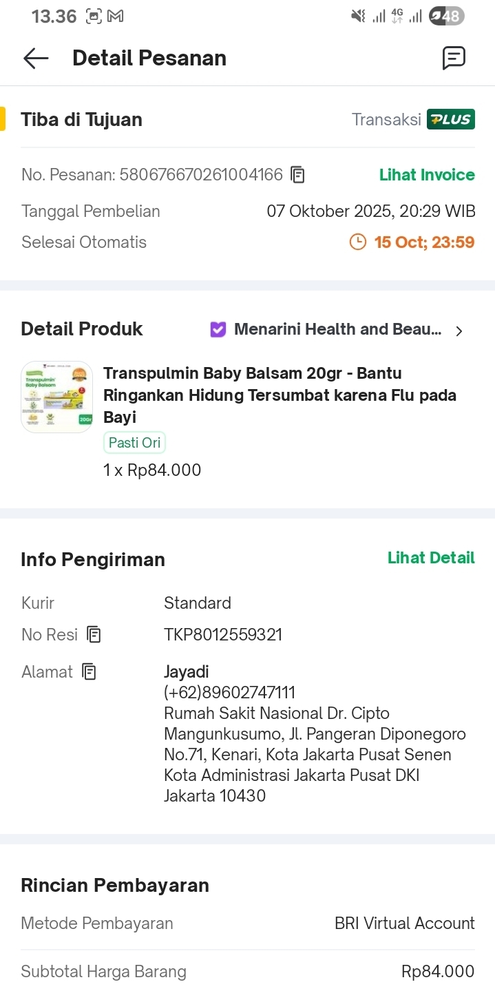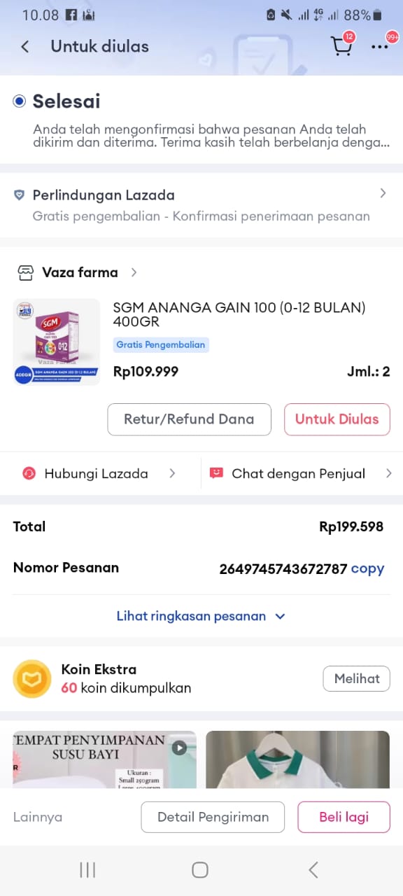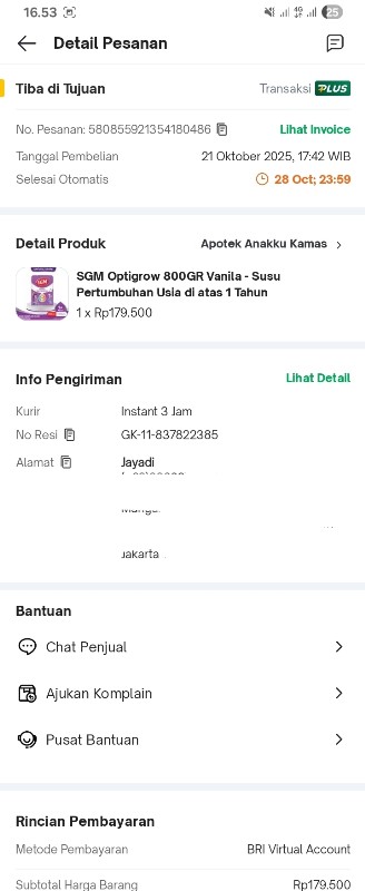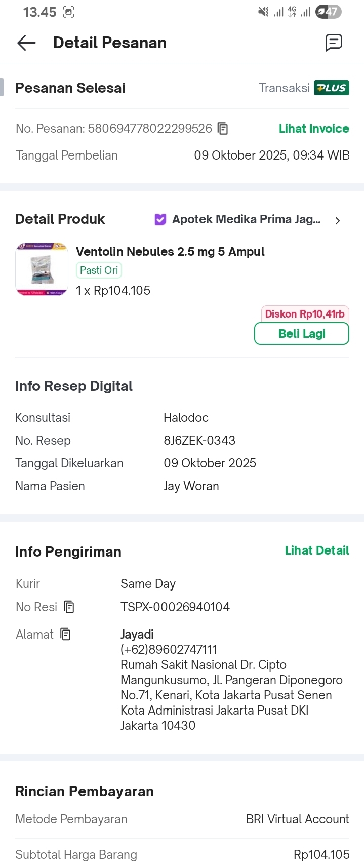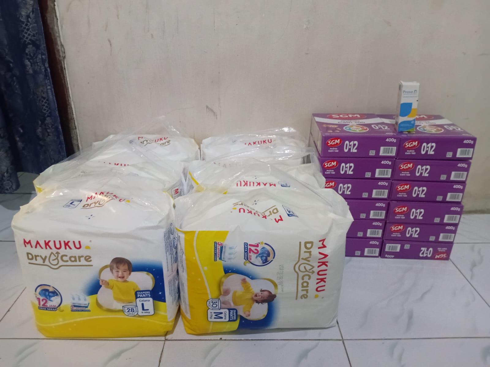 Dana digunakan untuk 1. Madu forbee 450 gr Rp180.000 2. Popok Bayi Perekat L 40 2 pack x Rp100.000 = Rp200.000 3. Tisu basah 6 pack x Rp5000 = Rp30.000 4. Tisu Paseo 4 pack x Rp15.000 = Rp60.000 5. Konsumsi 2 minggu di jakarta Rp1.000.000 6. Susu SGM Optigrow 1+ 800 gram Rp170.000 7. Salbutamol Rp60.000 8. Underpad Rp38.0002025-10-22 09:28:00