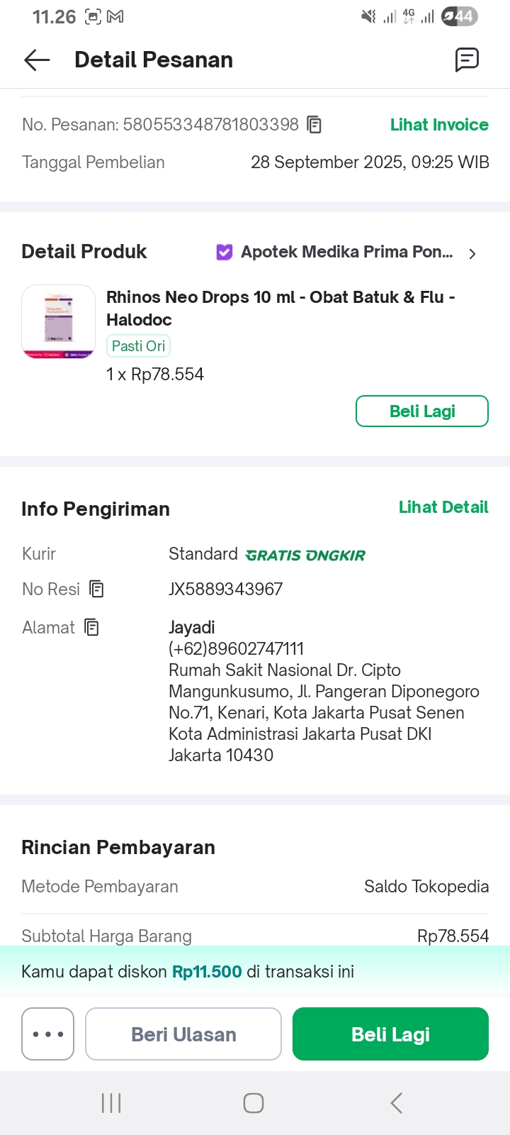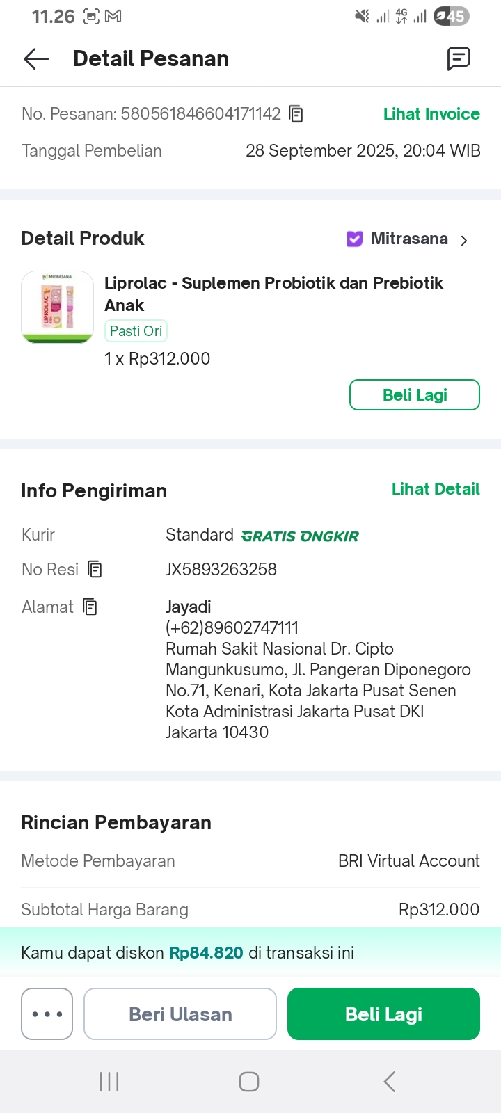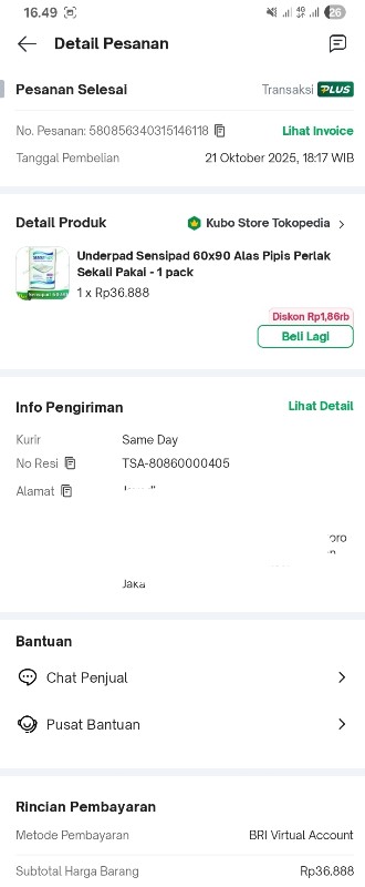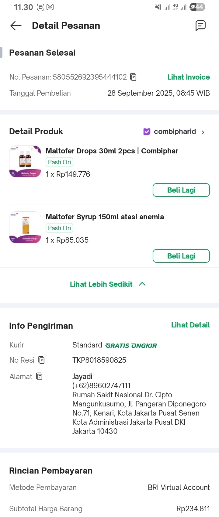 Dana digunakan untuk 1. Madu forbee 450 gr Rp180.000 2. Popok Bayi Perekat L 40 2 pack x Rp100.000 = Rp200.000 3. Tisu basah 6 pack x Rp5000 = Rp30.000 4. Tisu Paseo 4 pack x Rp15.000 = Rp60.000 5. Konsumsi 2 minggu di jakarta Rp1.000.000 6. Susu SGM Optigrow 1+ 800 gram Rp170.000 7. Salbutamol Rp60.000 8. Underpad Rp38.0002025-10-22 09:28:00