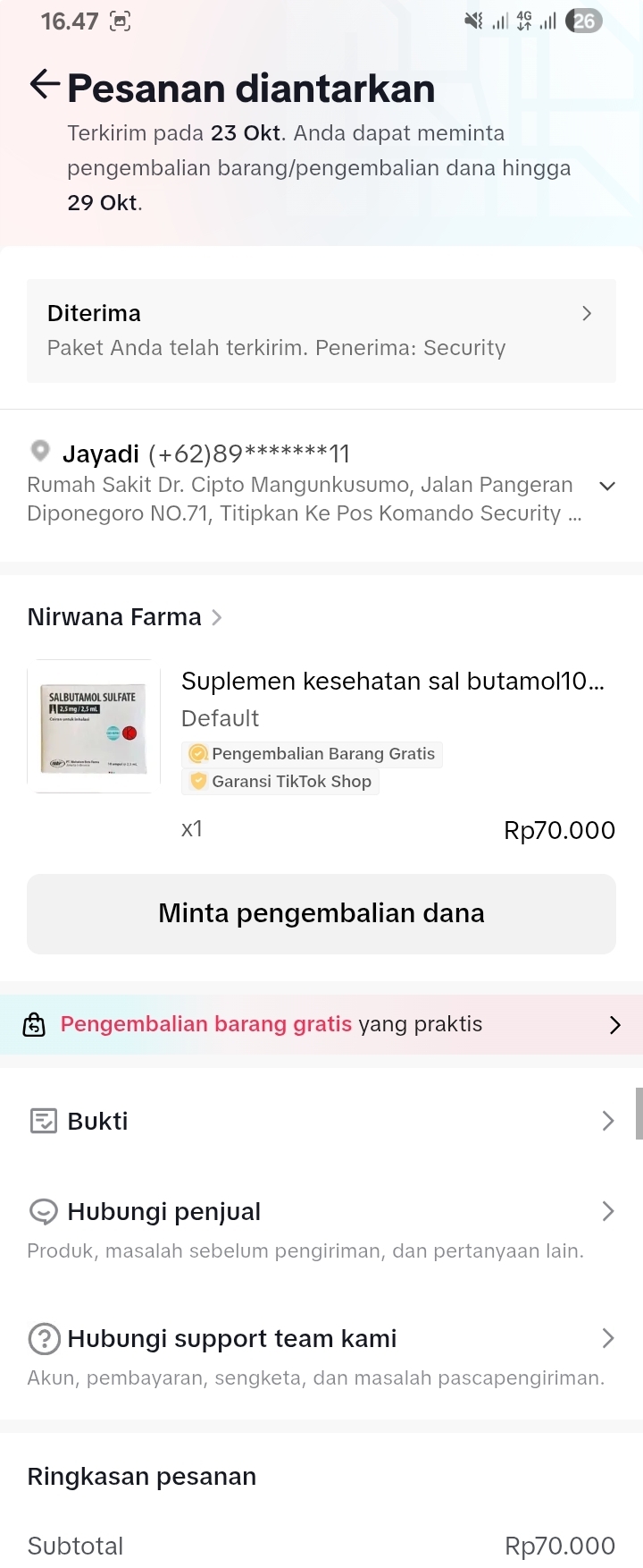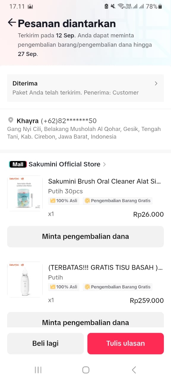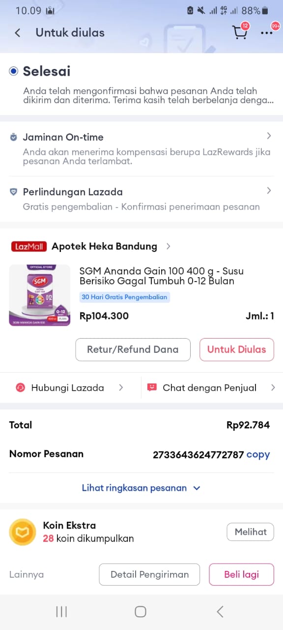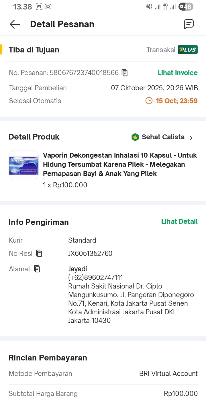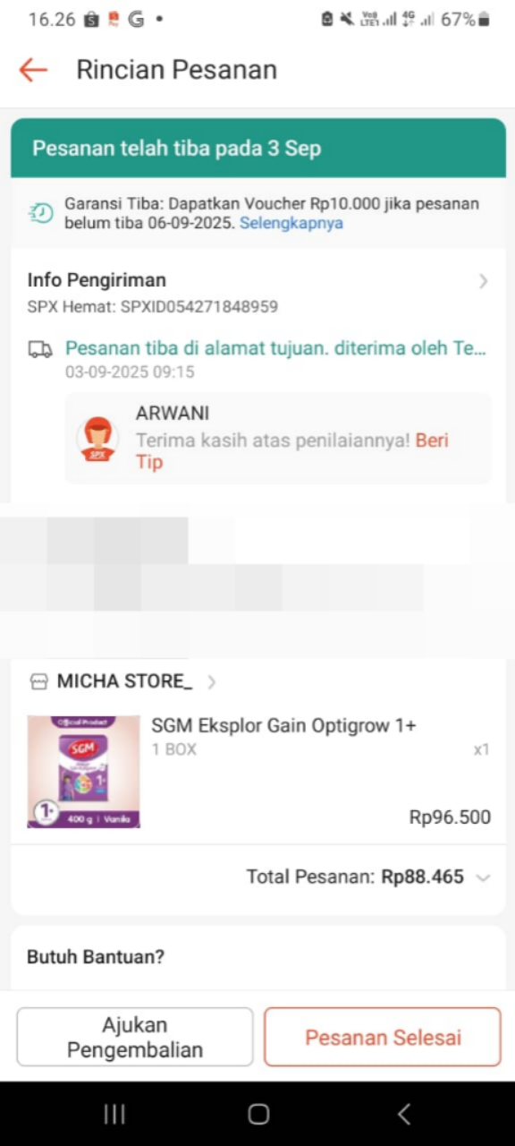 Dana digunakan untuk 1. Madu forbee 450 gr Rp180.000 2. Popok Bayi Perekat L 40 2 pack x Rp100.000 = Rp200.000 3. Tisu basah 6 pack x Rp5000 = Rp30.000 4. Tisu Paseo 4 pack x Rp15.000 = Rp60.000 5. Konsumsi 2 minggu di jakarta Rp1.000.000 6. Susu SGM Optigrow 1+ 800 gram Rp170.000 7. Salbutamol Rp60.000 8. Underpad Rp38.0002025-10-22 09:28:00