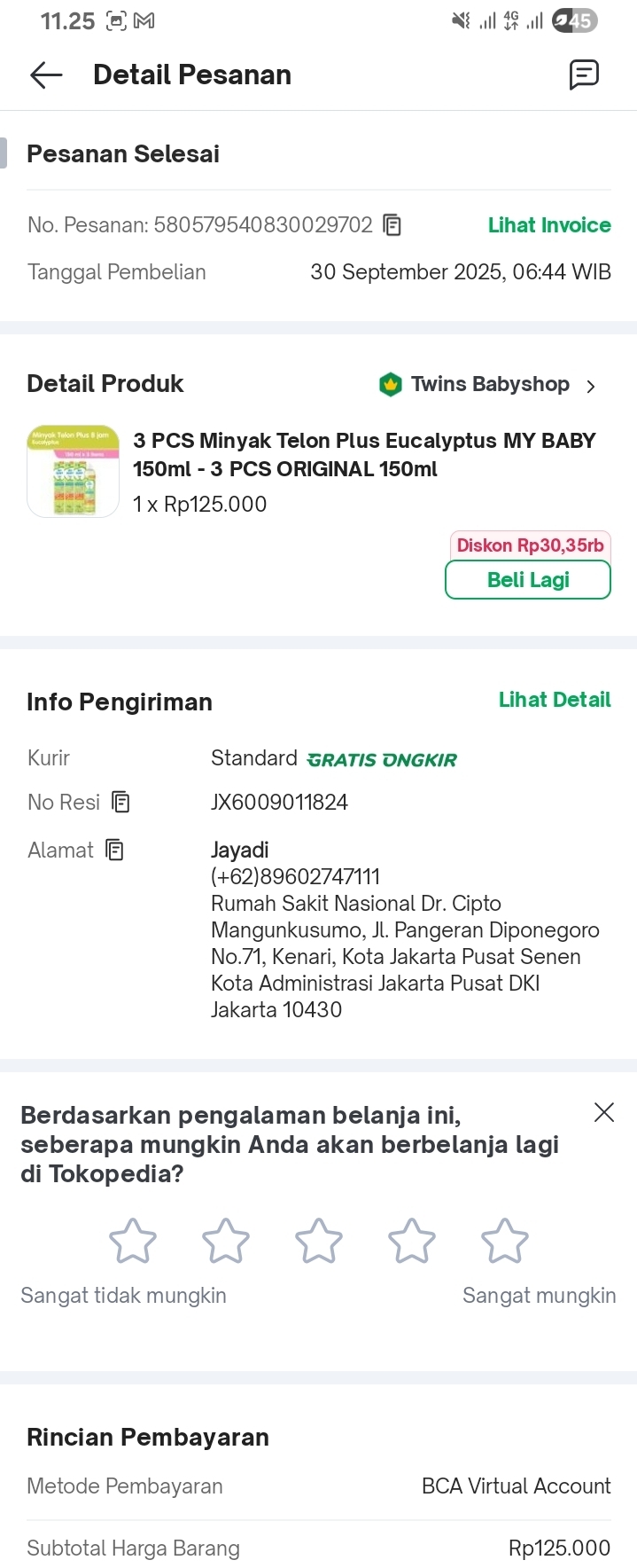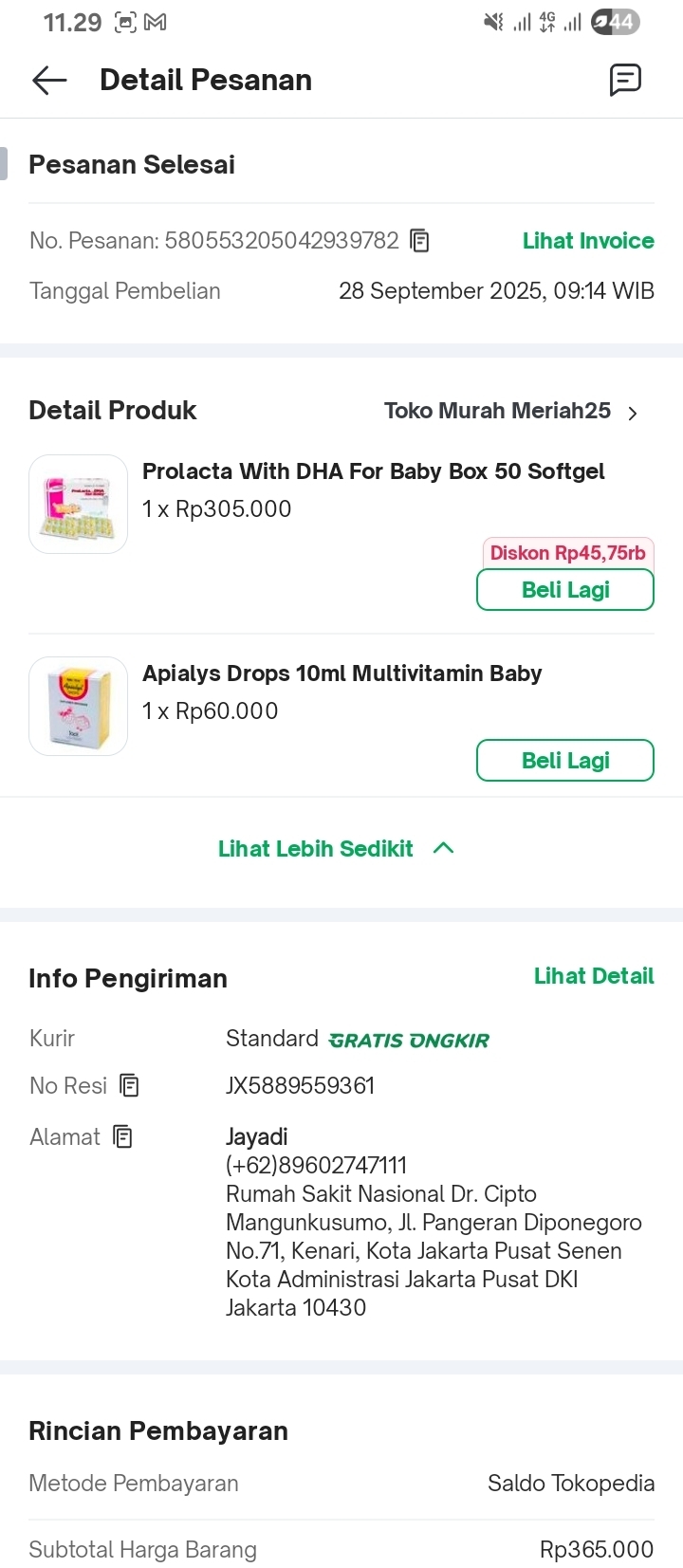 Dana digunakan untuk 1. Prolacta DHA Rp400.000 2. Maltofer drop 150ml Rp200.000 3. Liprolac Baby 8ml Rp215.000 4. Rhinos Neo drops10 ml Rp104.000 5. Minyak telon 150m Rp52.000 x 3 = Rp156.000 6. Apialys drop 10ml Rp63.000 7. Pluse Oxymeter Rp230.000 8. Konsumsi 2 minggu di jakarta Rp1.000.0002025-09-29 11:51:38