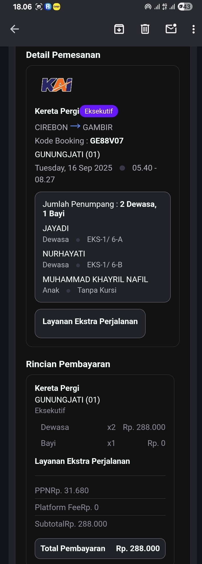 Dana digunakan untuk tambahan pembelian tiket kereta ke Cirebon2025-08-18 09:20:29