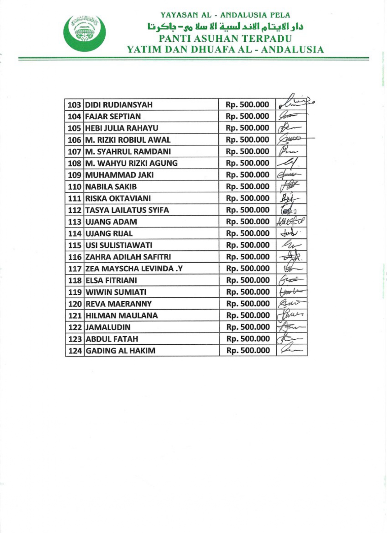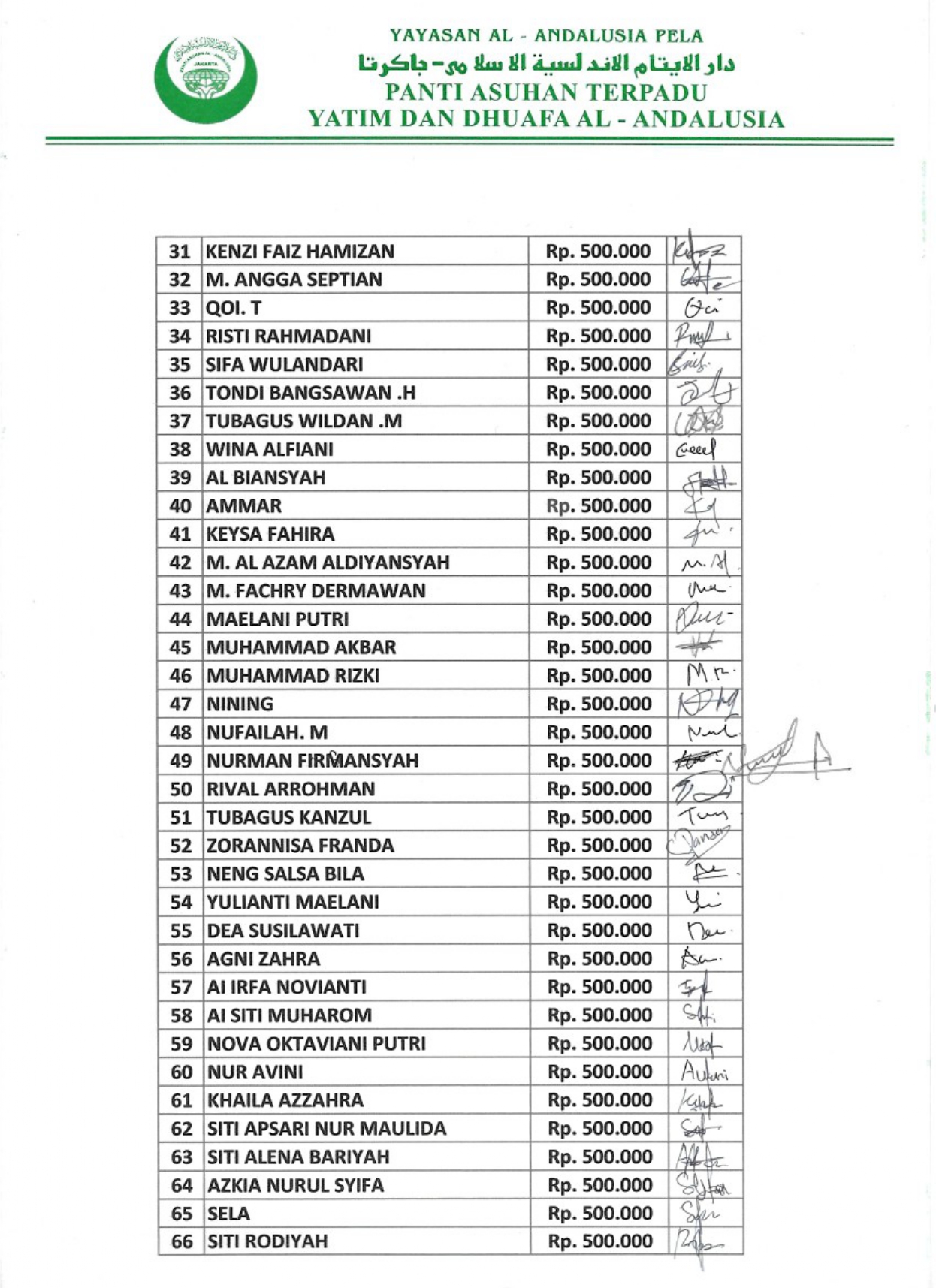 Ke rekening ****131 a/n PANTI ASUHAN AL ANDALUSIA