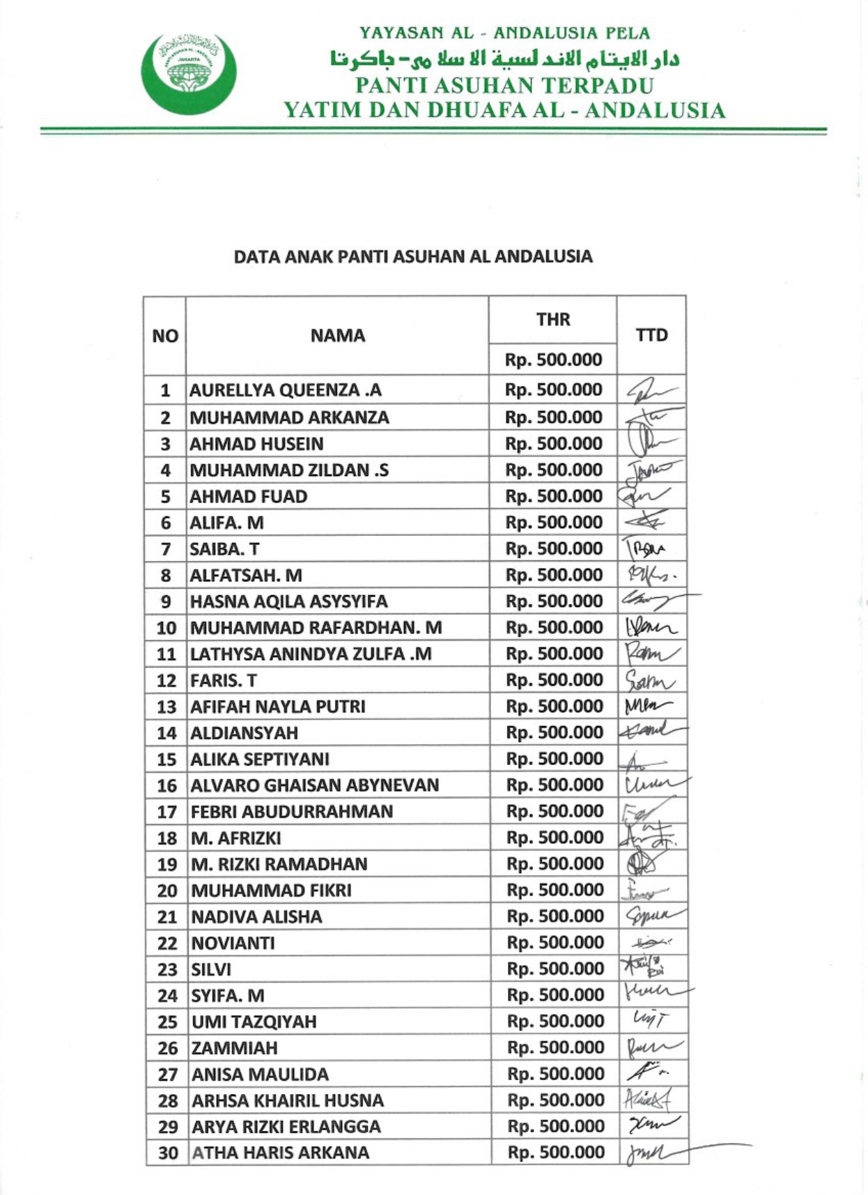 Dana digunakan untuk Tunjangan Hari Raya (THR) Rp500.000 x 124 anak = Rp62.000.0002025-04-07 09:58:46