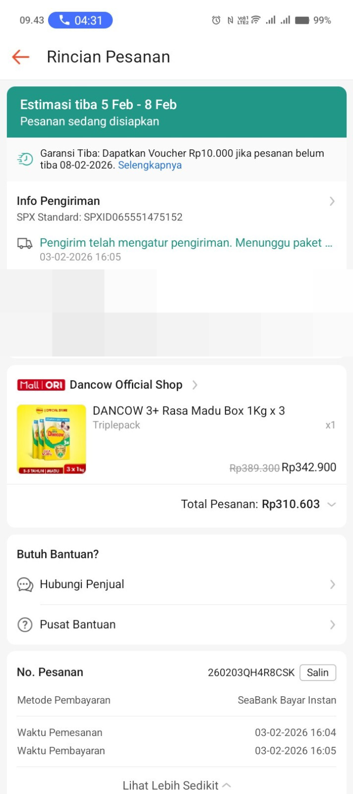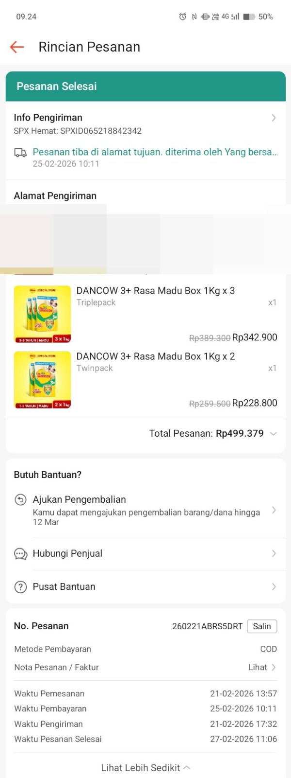 Dana digunakan untuk Pembelian susu dancow 3+ 1kg 5x Rp100.000= Rp500.0002026-02-23 10:02:38