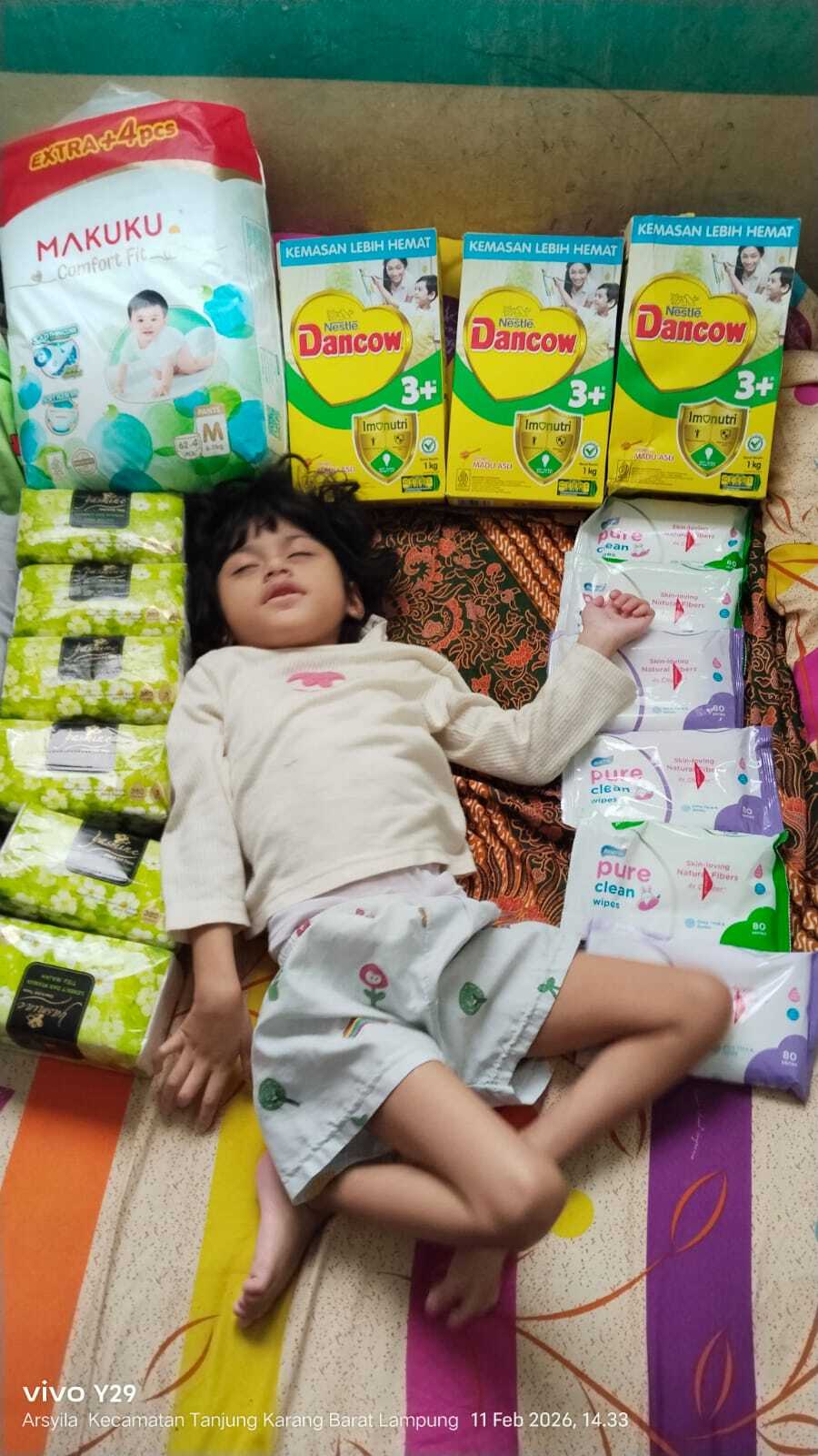 Bantuan yang diberikan telah kami gunakan untuk memenuhi kebutuhan Adiva, seperti membeli susu pertumbuhan, serta popok sekali pakai untuk keperluan harian. Semua ini sangat membantu dalam mendukung tumbuh kembang dan kenyamanan Adiva.