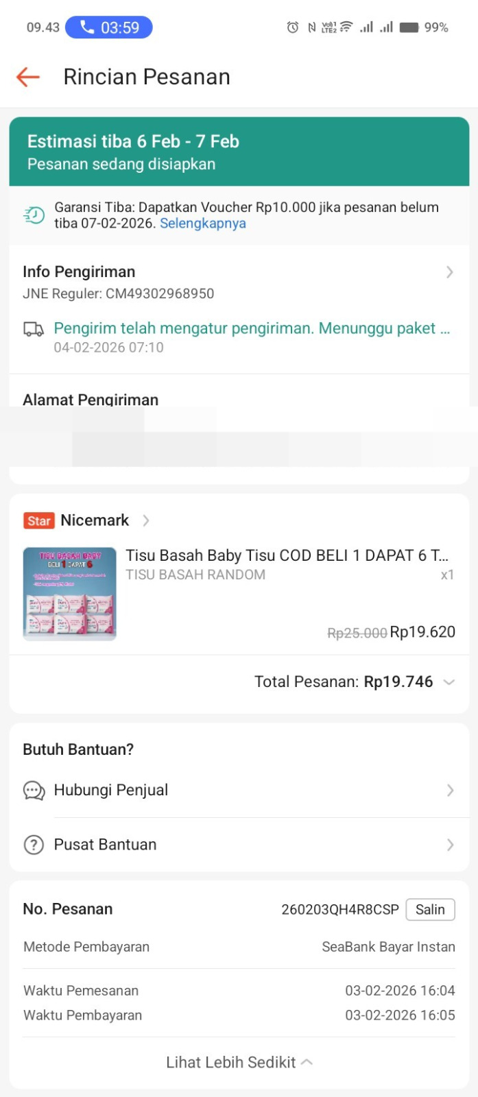 Dana bantuan dari #TemanBaik digunakan untuk pembelian susu sebanyak 3 dus, pampers, tisu basah, dan tisu kering.