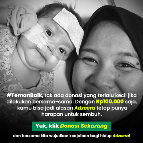 Mohon doa dan dukungan dari #TemanBaik semua untuk kesembuhan Adzeera. Terima kasih atas doa dan bantuan yang telah diberikan. Semoga kebaikan ini dibalas dengan kesehatan, kelancaran rezeki, dan keberkahan.
