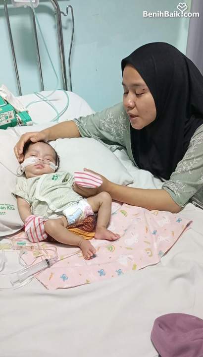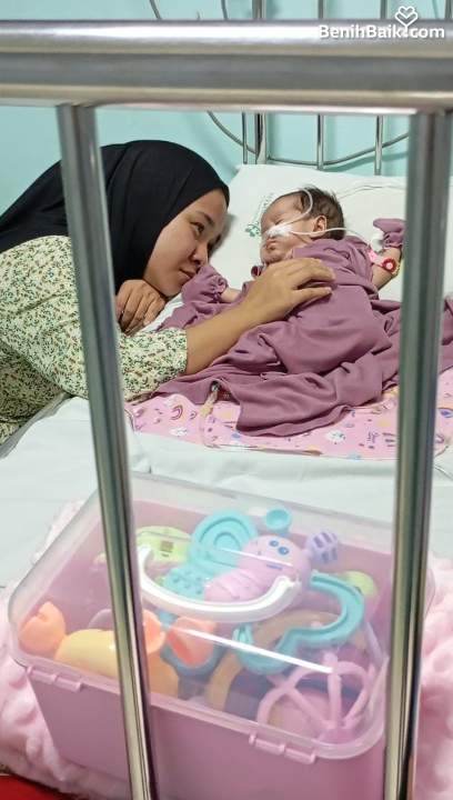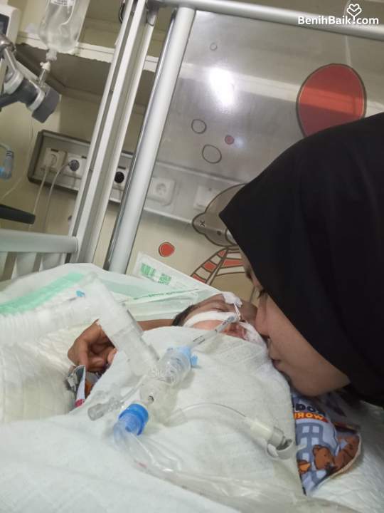 “Setiap hari aku hanya bisa membisikkan doa, ‘kuat ya Nak, cepat sembuh,’ sambil menatap wajahnya yang dikelilingi selang alat bantu napas. Tubuhnya begitu kecil dan rapuh, mengusap kepalanya pun kulakukan pelan sekali, seakan Ia rentan pecah…”