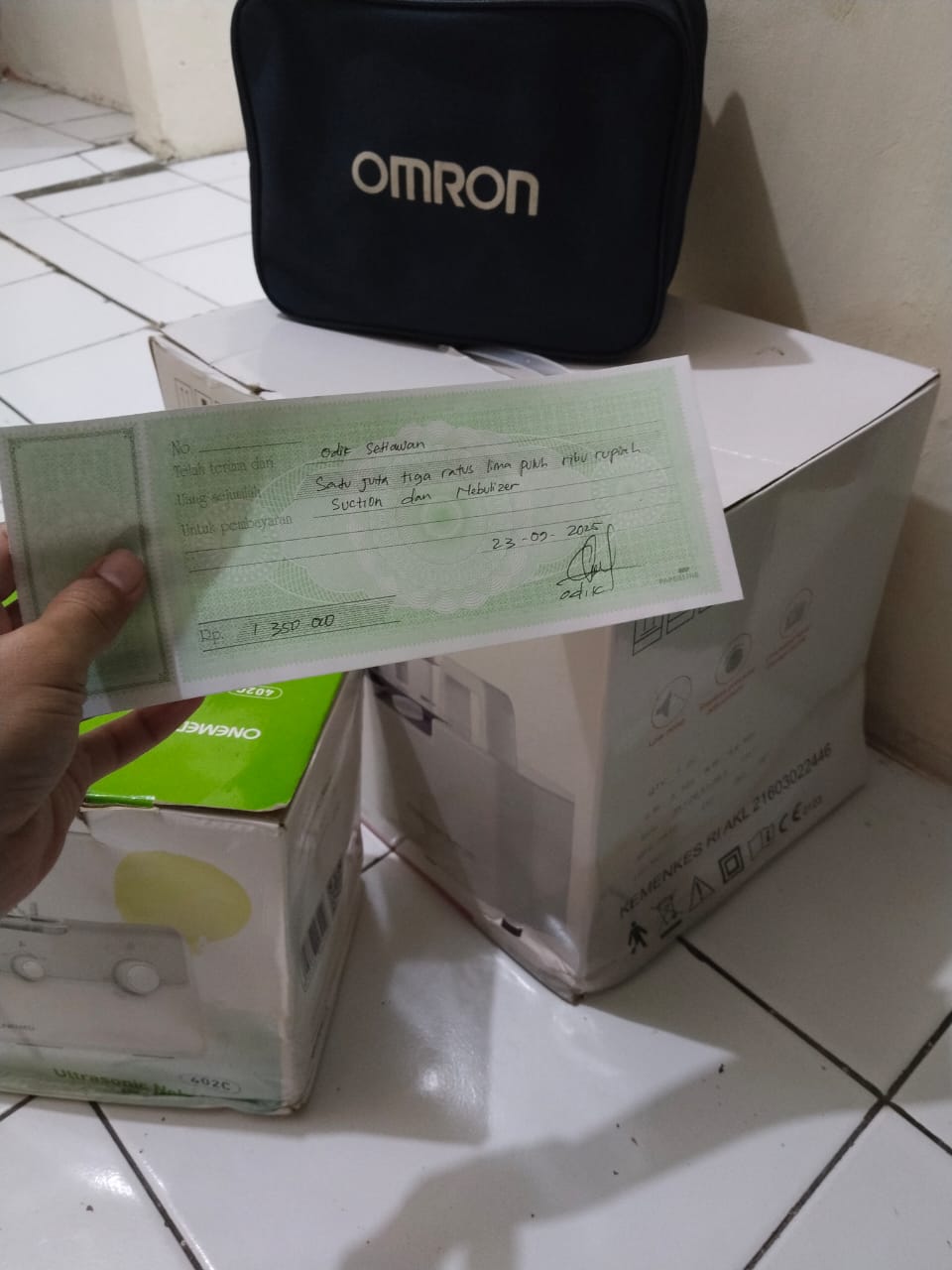 Dana digunakan untuk 1. Beli suction pump bekas Rp. 800,000 2. Nebulizer bekas Rp. 550,000 3. Ganti NGT Rp250.000 4. Beli dan isi ulang oksigen m2 2 tabung Rp. 2,450,000 5 Sewa mobil dan bensin kontrol ke RS Rp500,000 6. Pengisin e-toll Rp60.000 7. Pampers momypoko Rp52,000 × 2ball = Rp104,000 9, Pembelian fidding grip Rp350,0002025-09-24 10:15:34