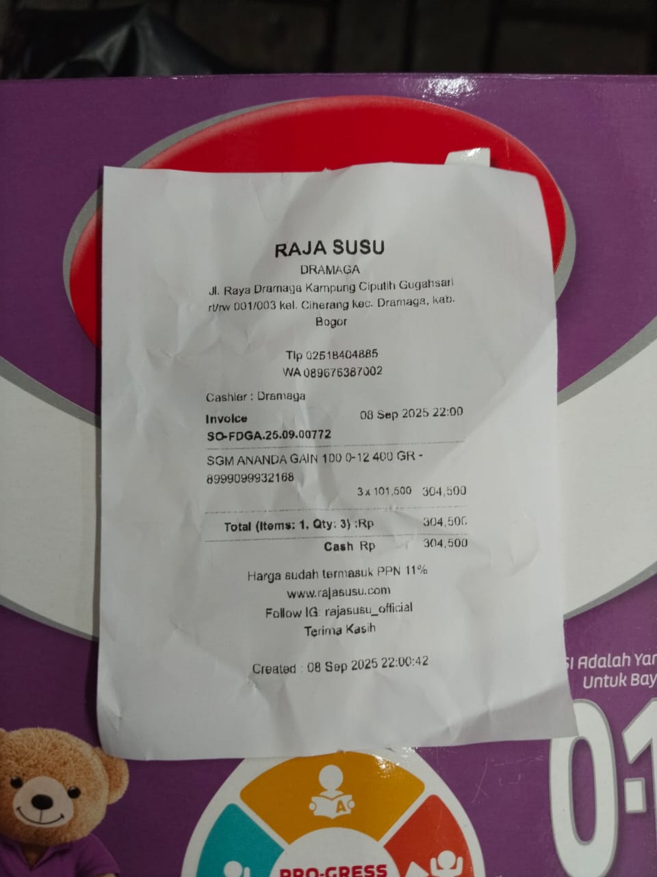 Dana digunakan untuk susu Sgm gain 100 2 dus Rp205.0002025-09-02 08:23:10