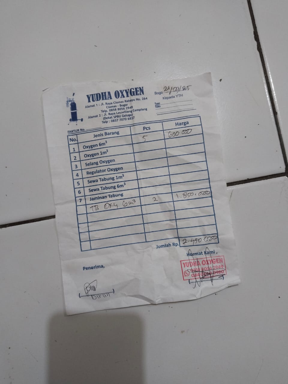 Namun, aku terkendala biaya untuk membeli tabung oksigen yang harganya bagiku tidak murah. Sementara suamiku terpaksa berhenti bekerja sejak aku menjalani operasi saat lahiran, dan dilanjutkan mengurus anak kami. Hanya kerja serabutan ketika ada kesempatan.