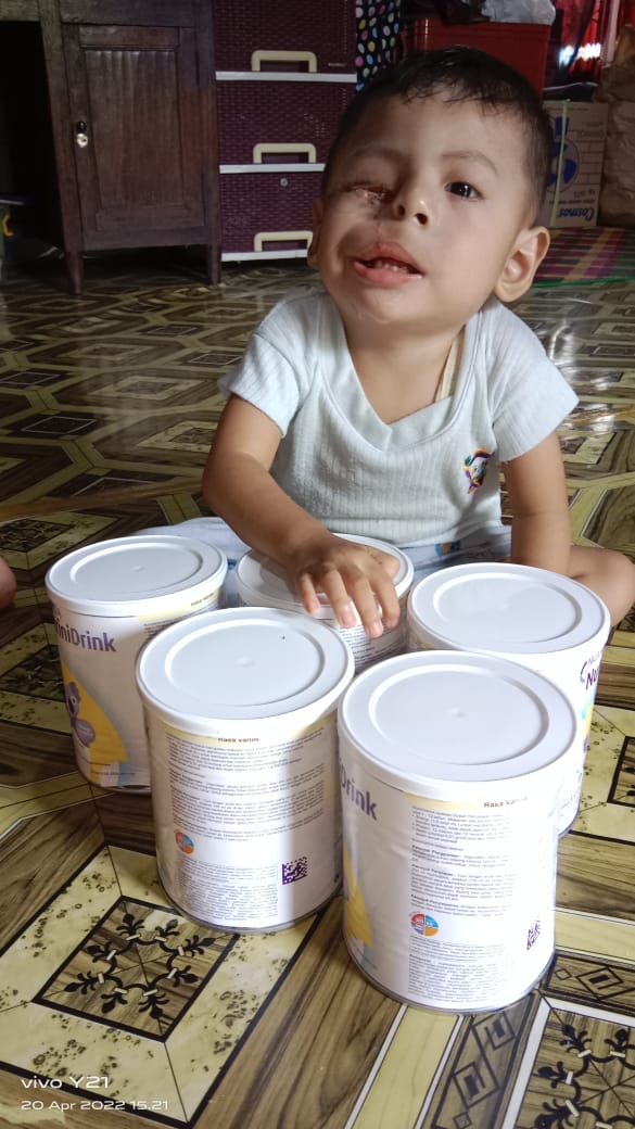 Bantuan dari TemanBaik disalurkan dalam bentuk pemenuhan nutrisi dan susu untuk Affan. Pemberian nutrisi ini ditujukan supaya berat badannya bertambah dan siap jika akan ada tindakan operasi.