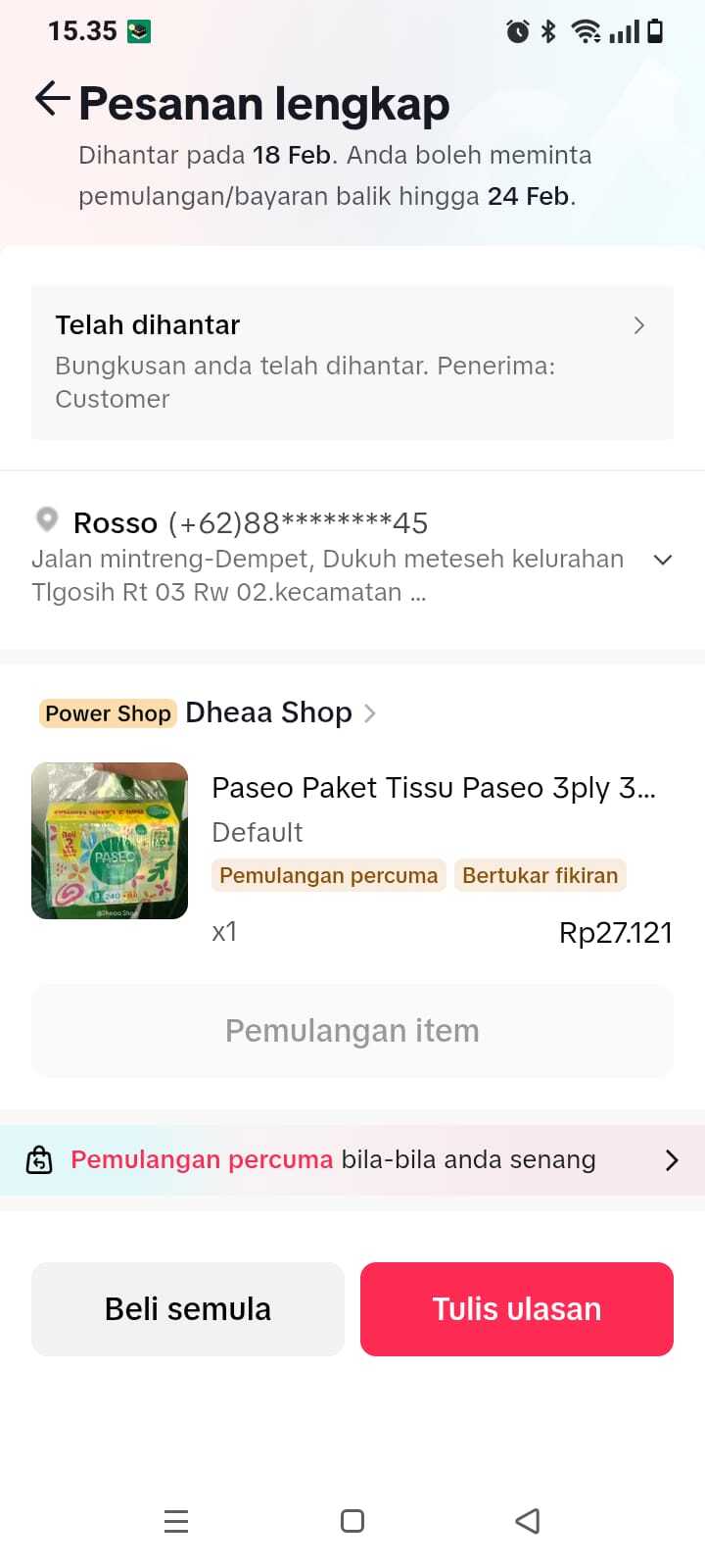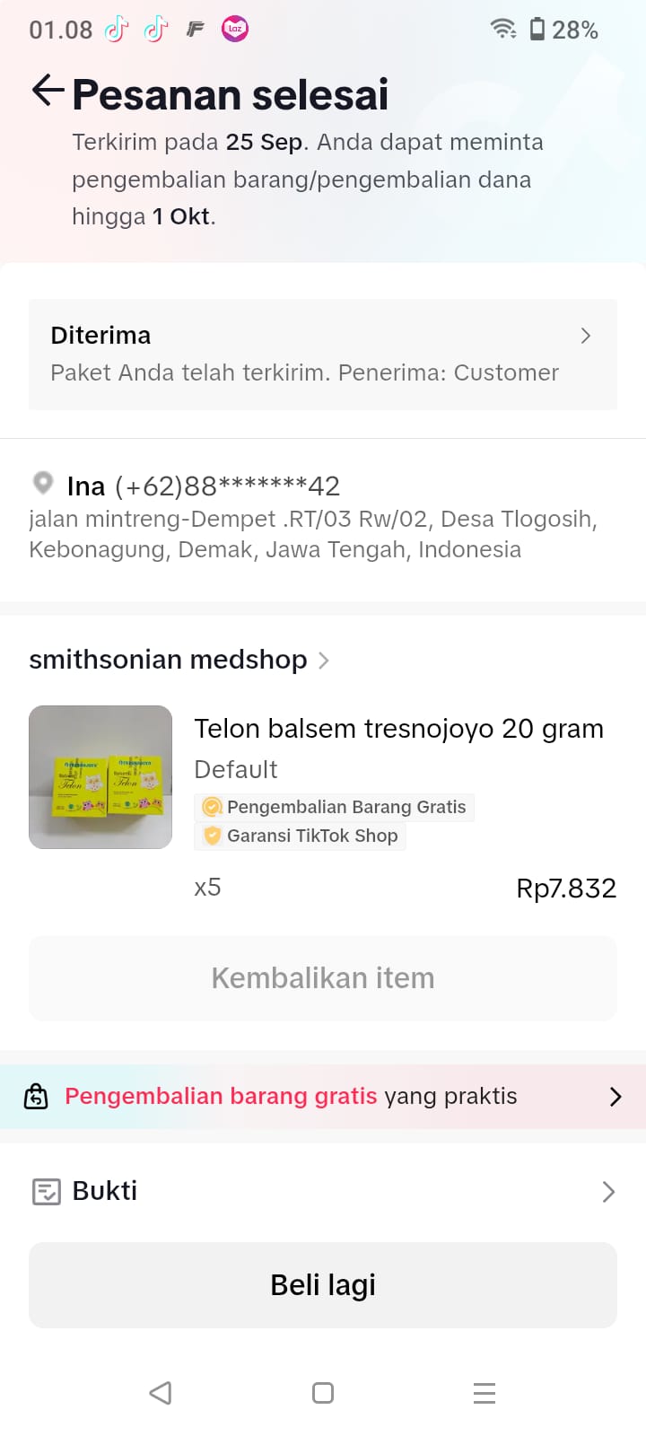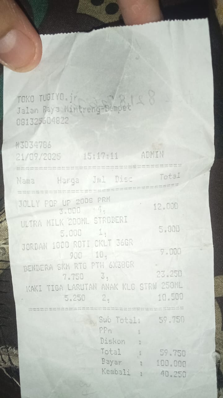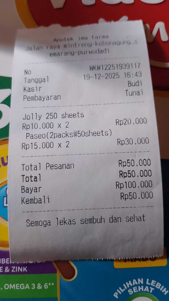 Sisa dana digunakan untuk membeli tisu dan balsem telon