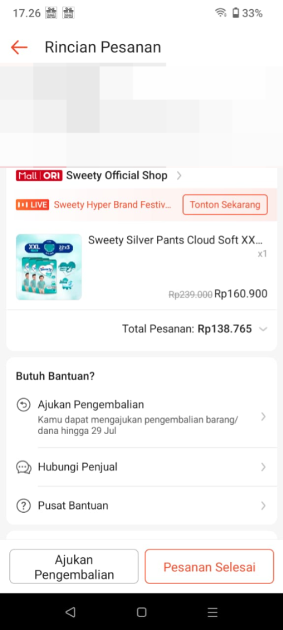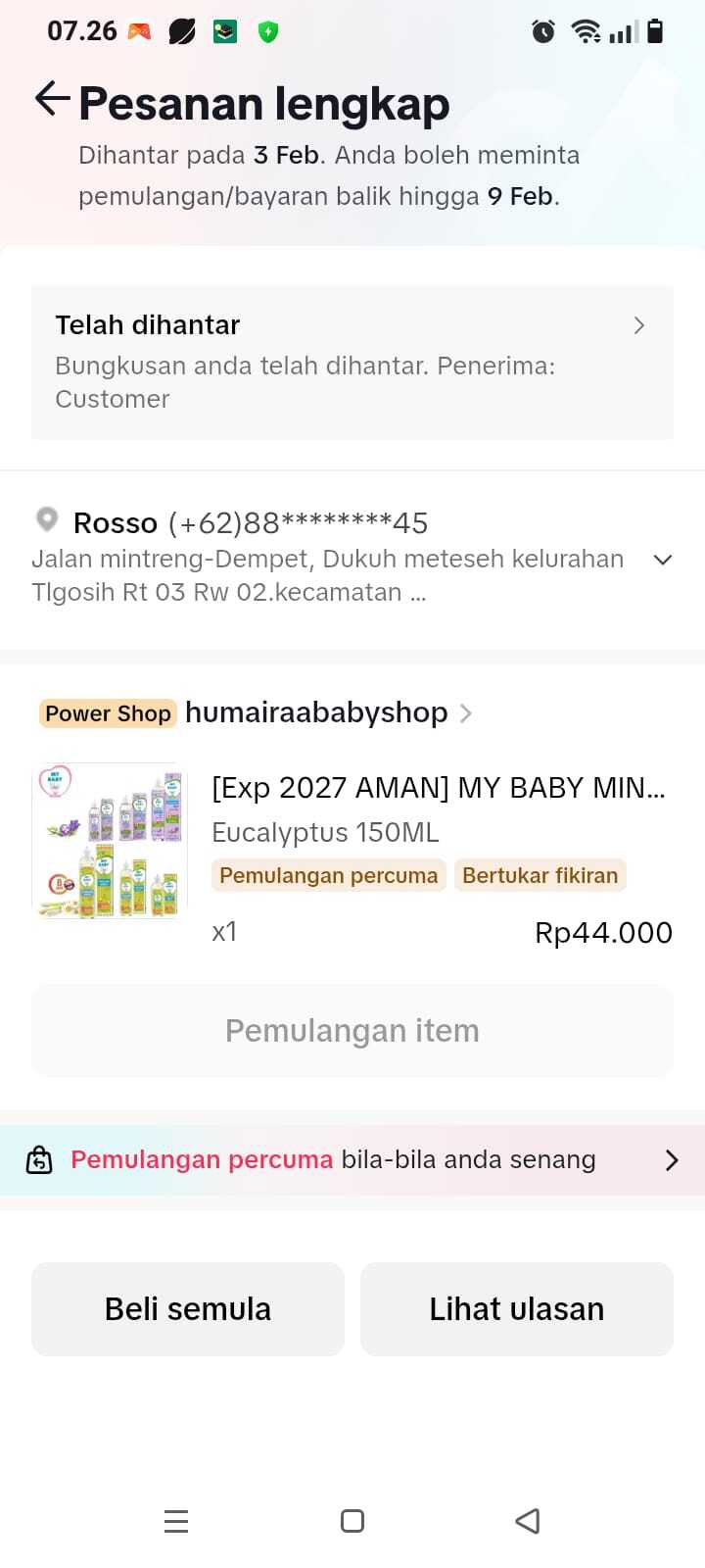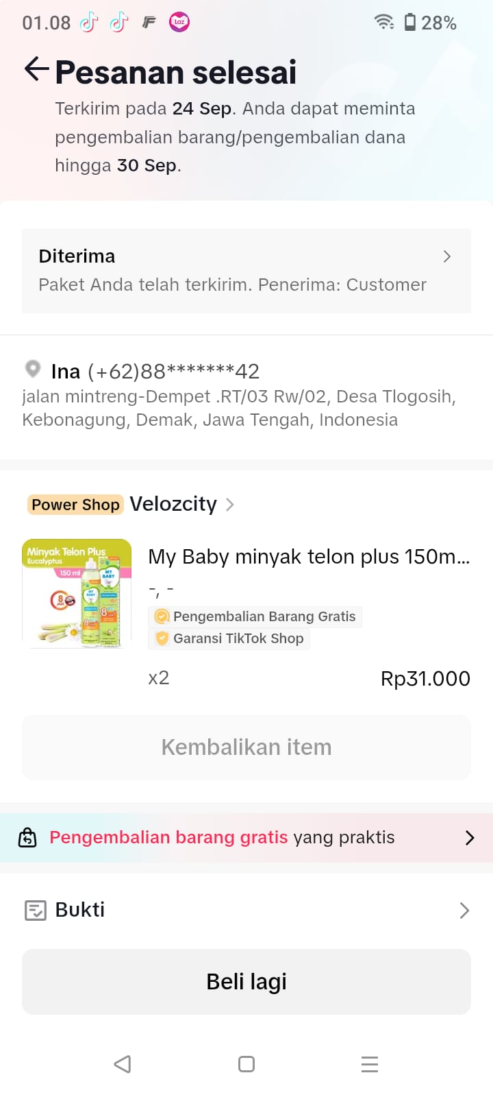 Minyak telon 2 x Rp35.000 = Rp70.000