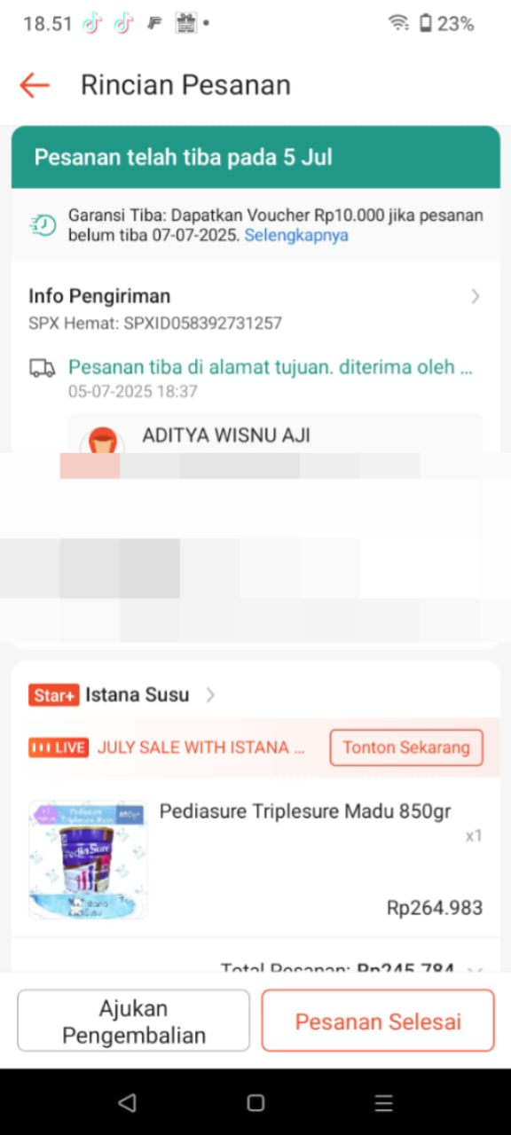 Dana digunakan untuk 1. Susu vidorant 3+ Rp75.000 x 10 = Rp750.000 2. Popok meries Rp85.000 x 8 ball = Rp680.000 3. Transportasi sewa mobil kontrol ke RS Rp350.0002025-06-03 15:26:26