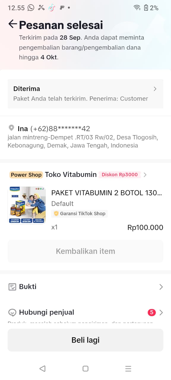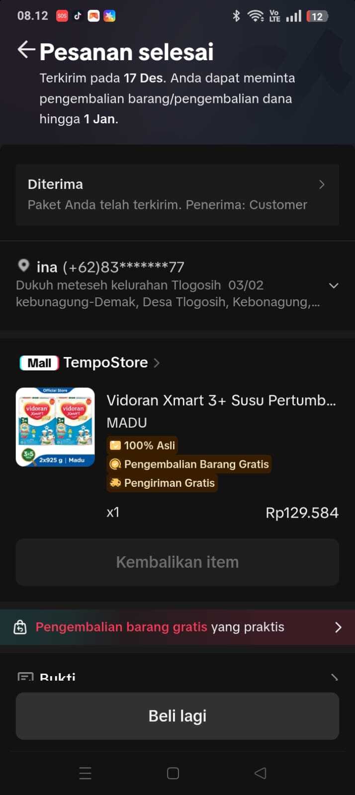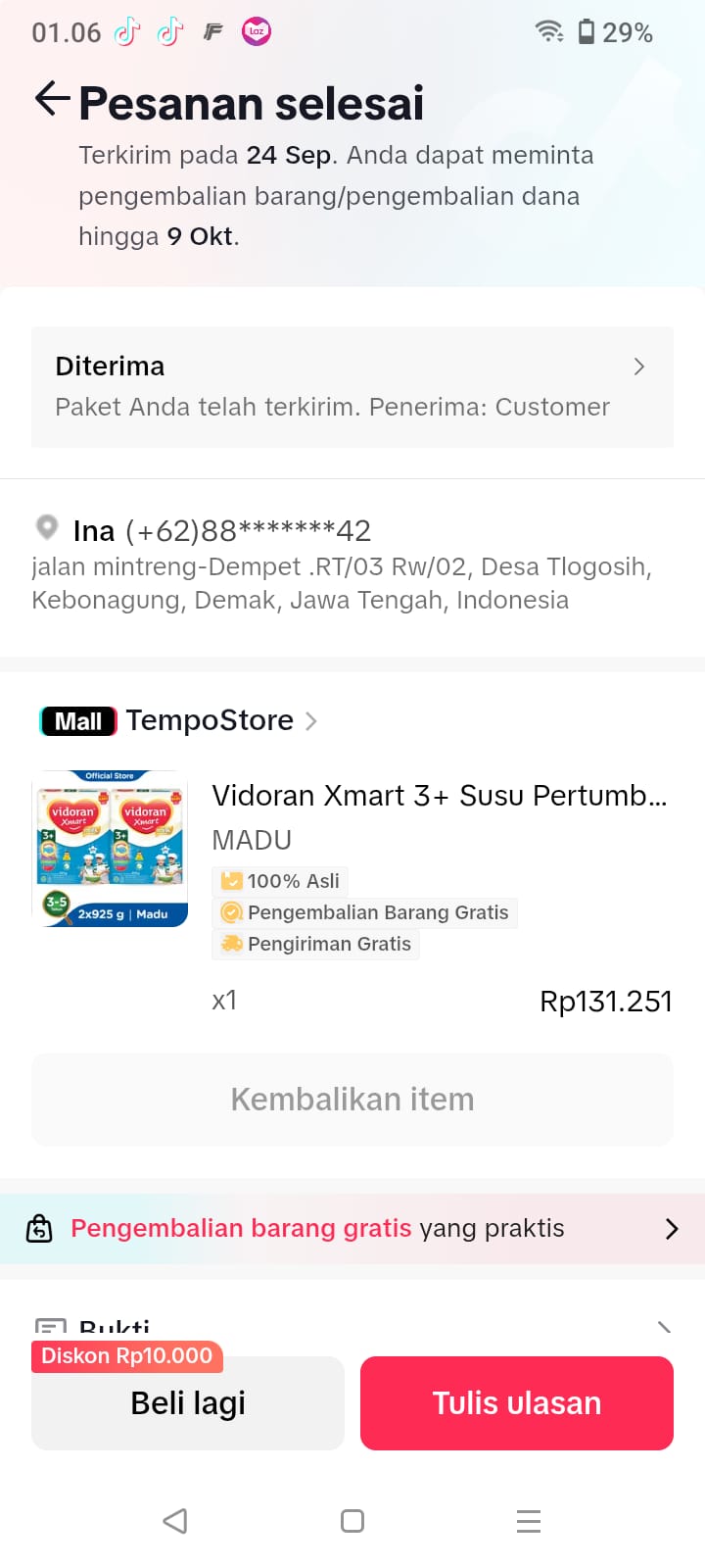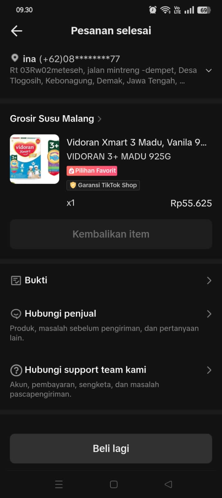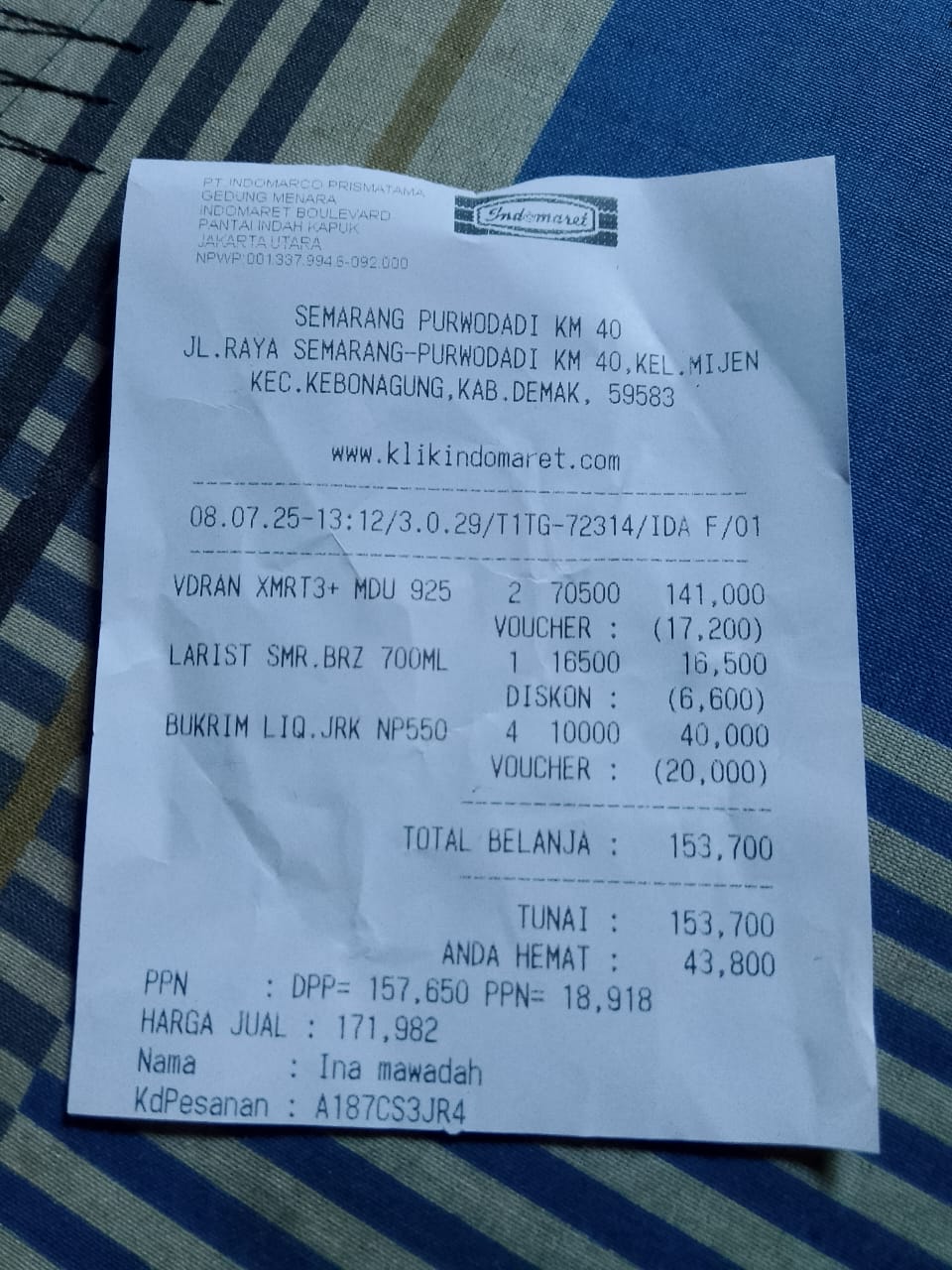 Susu Vidoran 10 x Rp70.000 = Rp700.000
