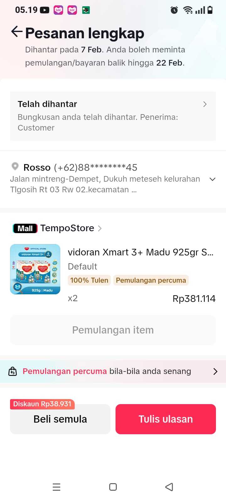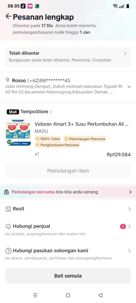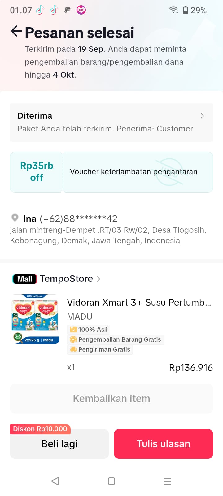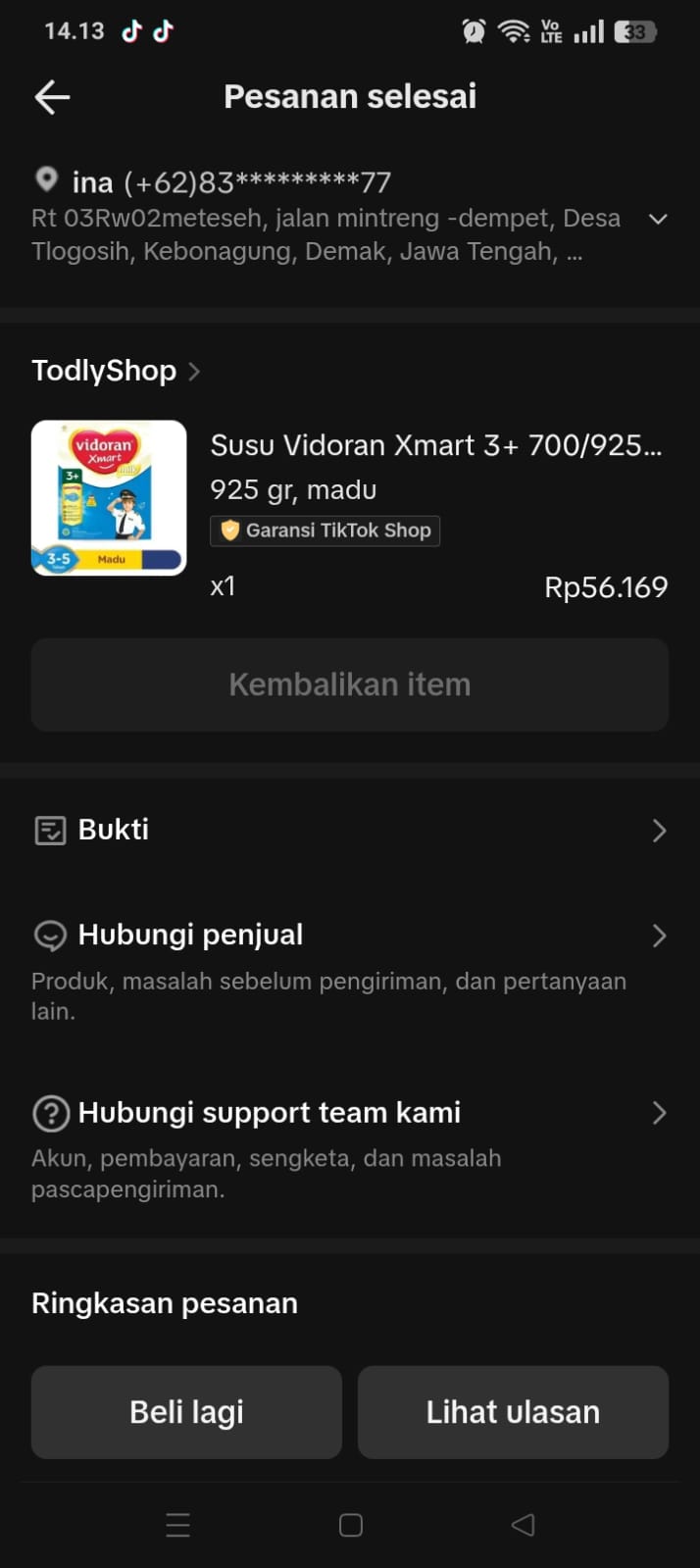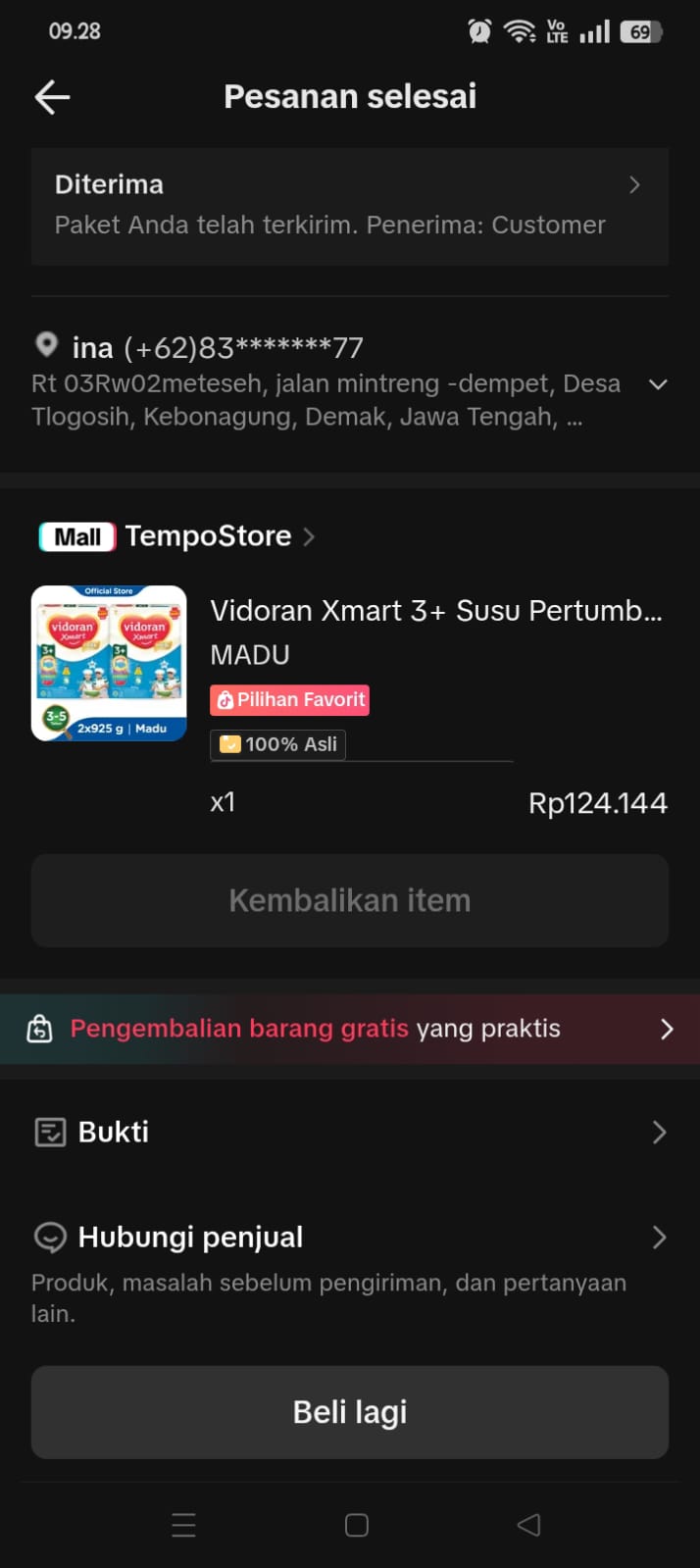 Susu Vidoran 10 x Rp70.000 = Rp700.000