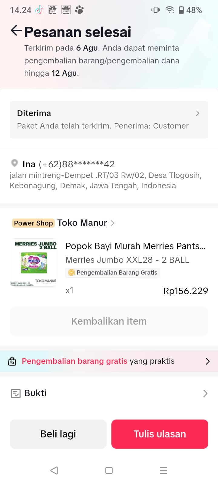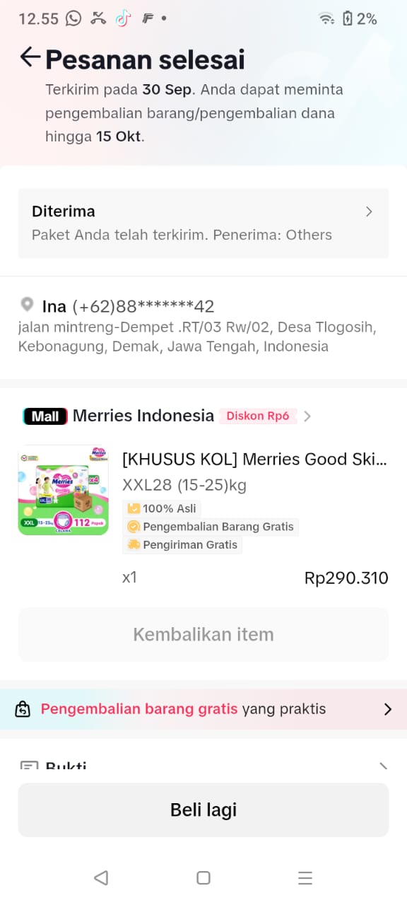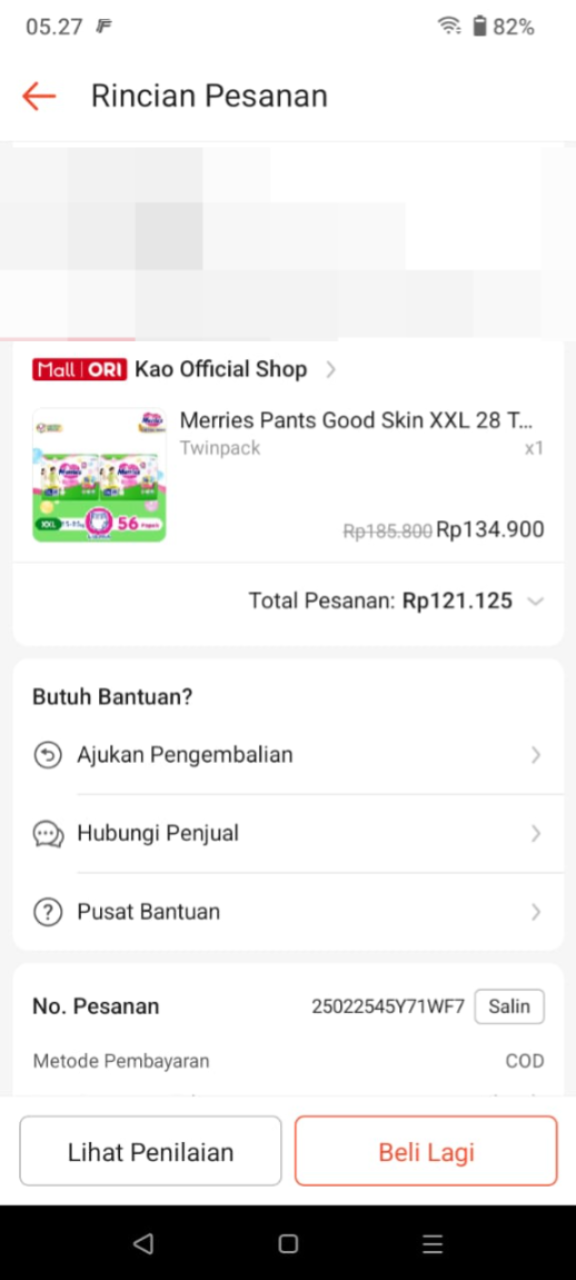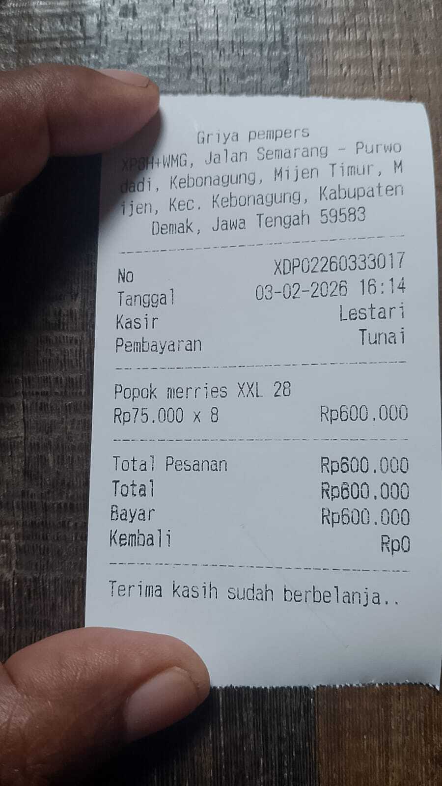 Popok Merries 8 x Rp80.000 = Rp640.000