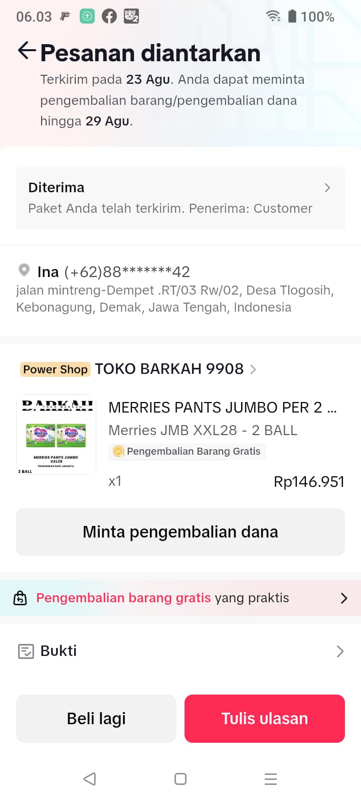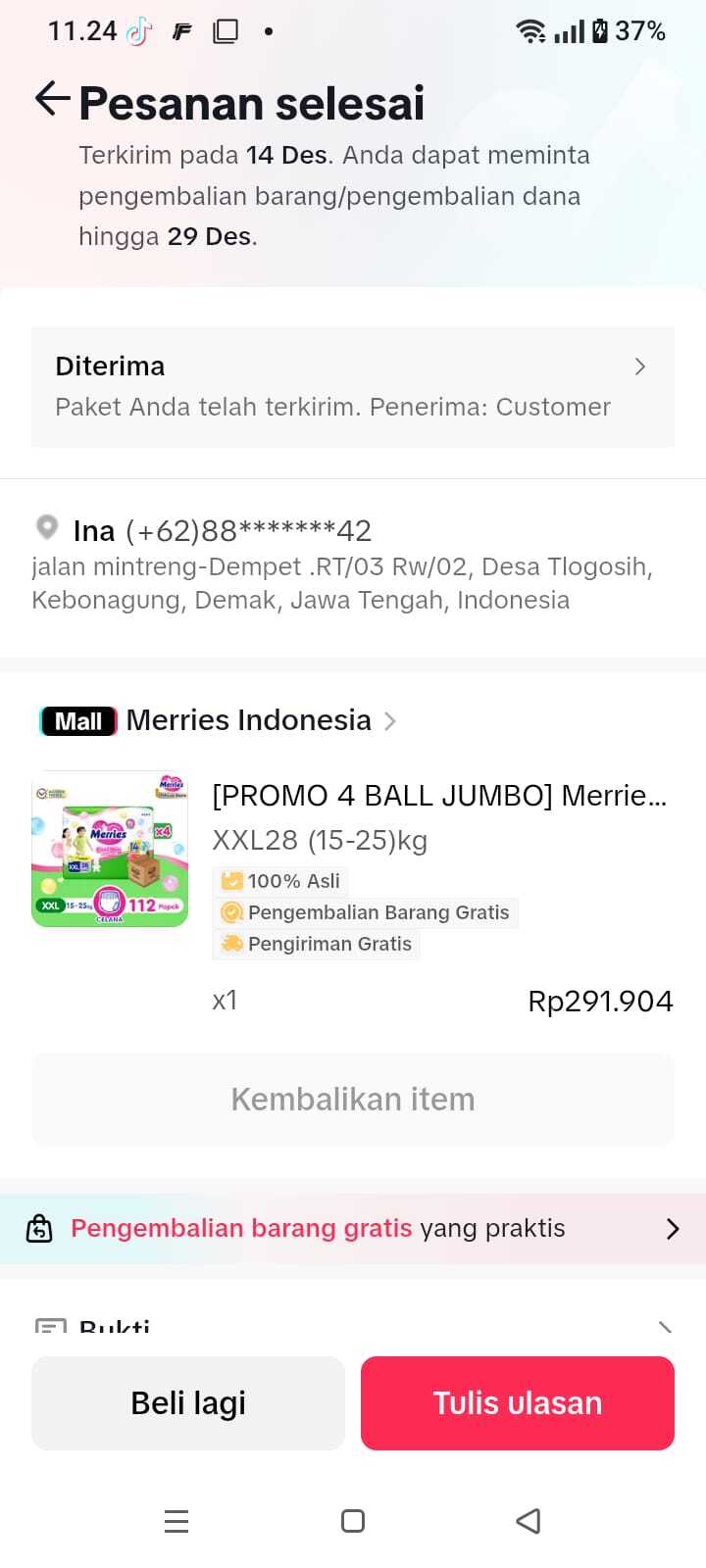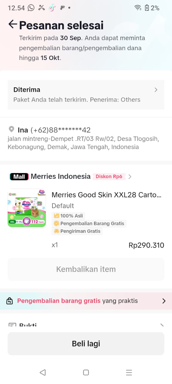 Popok Merries 8 x Rp80.000 = Rp640.000