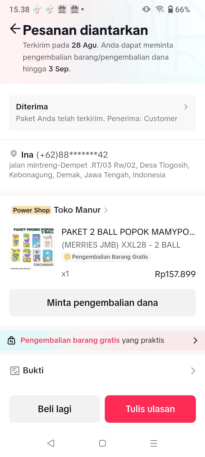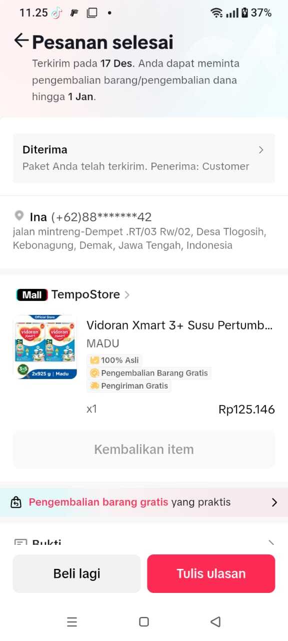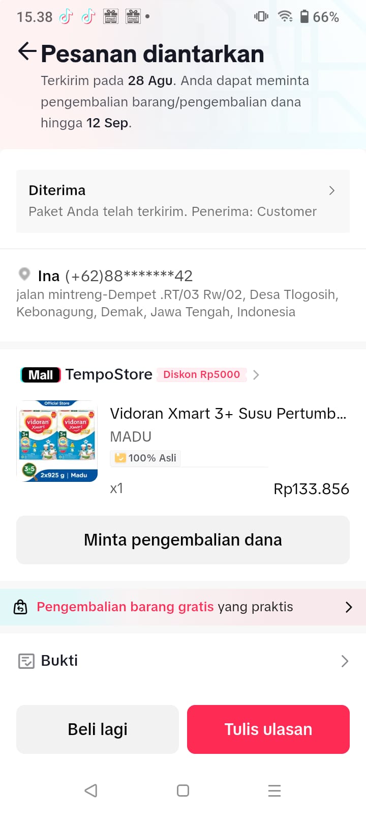 Dana digunakan untuk 1. Susu Vidoran 900gr Rp70.000 x 6dus = Rp420.000 2. mamypoko ukuran XxL harga Rp65.000/ball x 4bal = Rp260.000 3. Transportasi kontrol ke RS Rp300.0002024-09-18 09:22:28