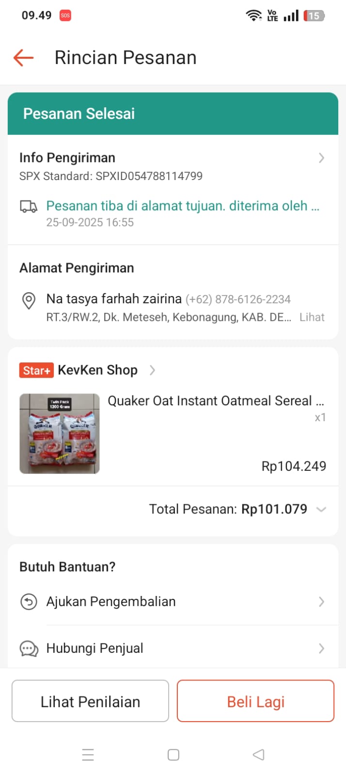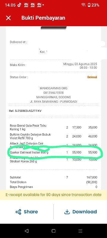 Oatmeal 2 x Rp60.000 = Rp120.000