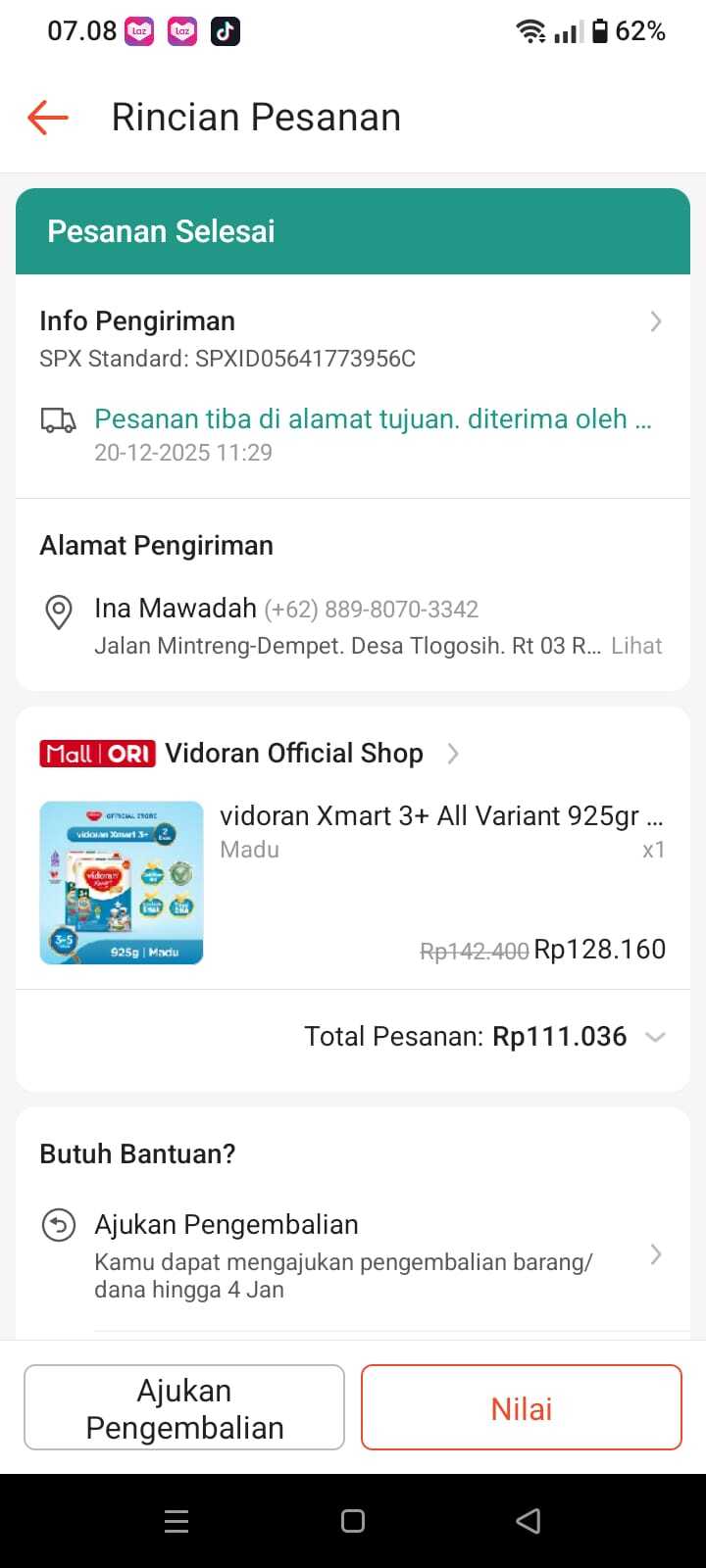 Dana digunakan untuk 1. Susu vidorant 10× Rp70.000=Rp700.000 2. Susupediasure 2 ×Rp350.000=Rp700.000 3. Popok merries 8× Rp75.000=Rp600.000 4. Vitamin vitabumin 2× Rp60.000= Rp120.000 5. Minyak telon+minyak kayu putih= Rp100.000 6. Tissu kering+basah Rp50.000 7. Transportasi sewa mobil kontrol ke RS pp Rp350.0002026-03-04 09:55:03