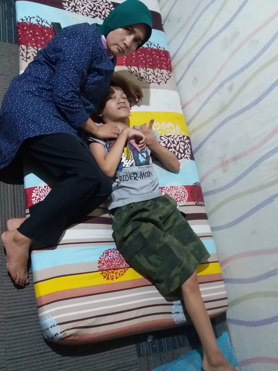 Kondisiku saat ini butuh alat kaki 1 pasang dan tangan 1 pasang untuk berjalan, nama alatnya afo dan splint. Kalau tidak pakai, seluruh tubuhku bisa kaku dan tegang, Ka. Sayangnya, alat itu tidak ditanggung BPJS, ya sudah pasti ibu dan bapak kesulitan untuk membelinya. Sementara bapak, hanya mengojek online.