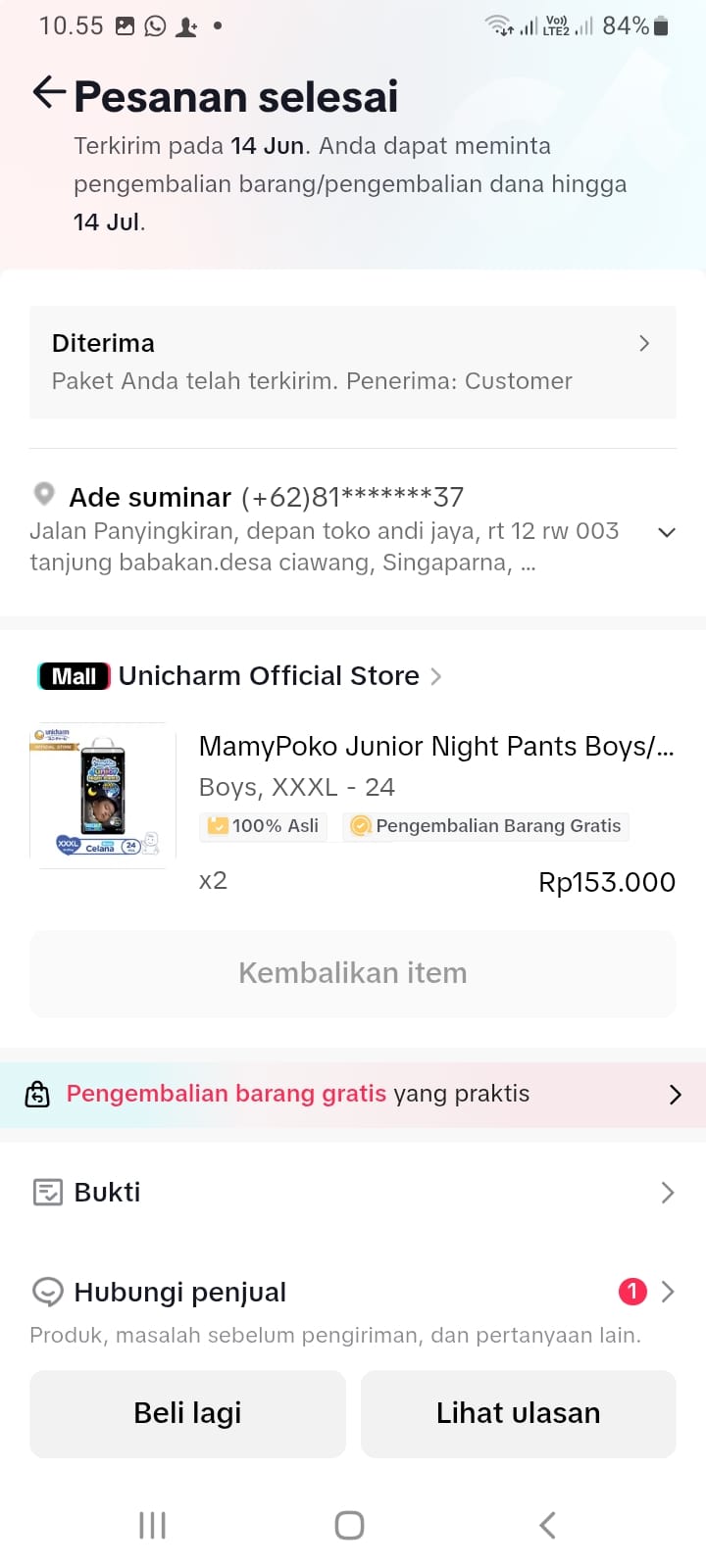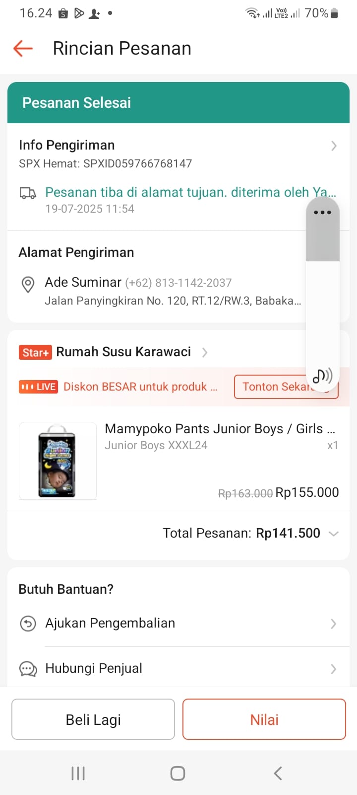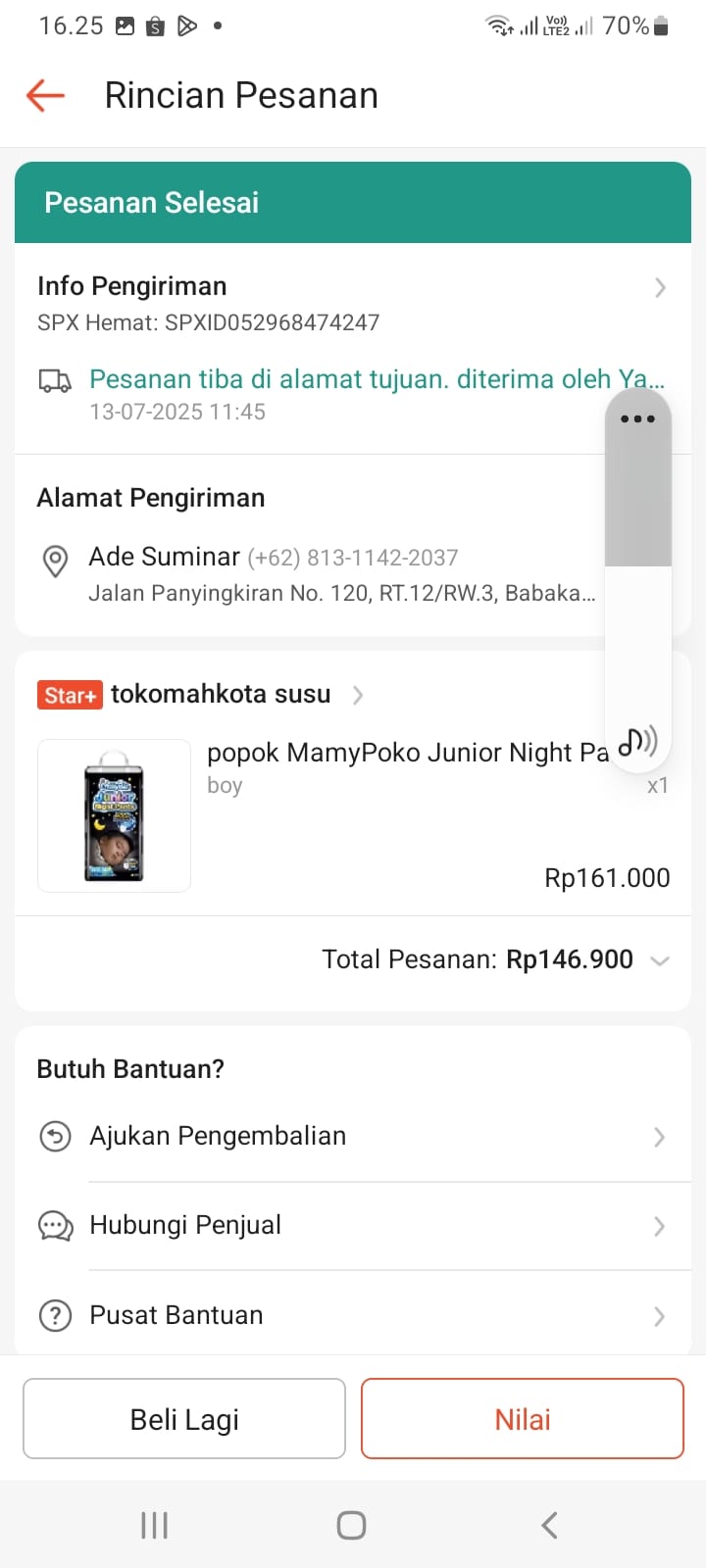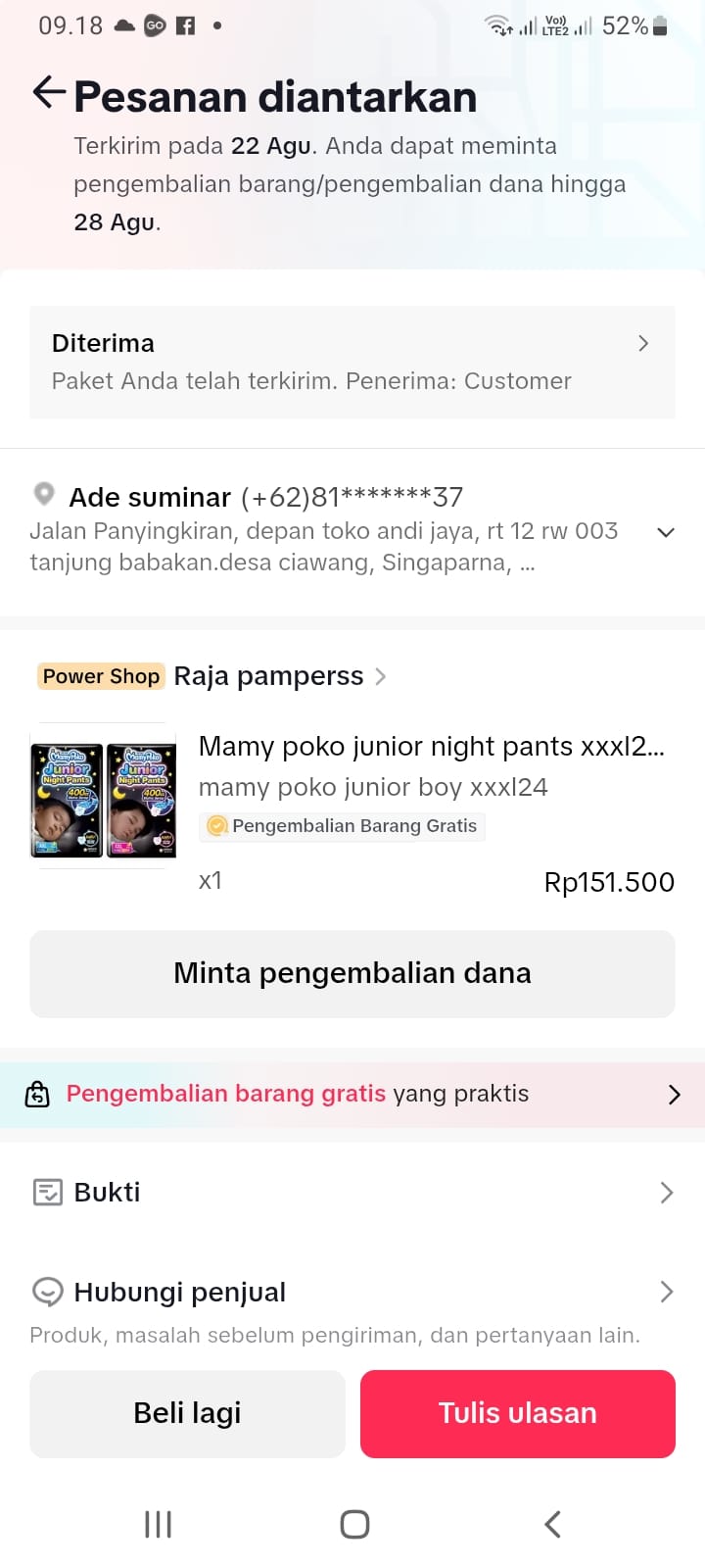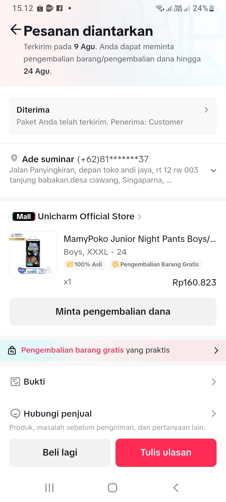 Dana digunakan untuk pembelian Pampers Mamypoko Junior xxxL Rp348.7382024-11-20 09:39:13