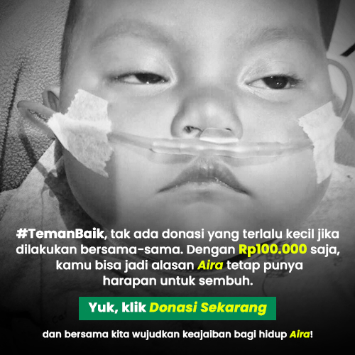 #TemanBaik, tak ada donasi yang terlalu kecil jika dilakukan bersama-sama. Dengan Rp100.000 saja, kita bisa jadi alasan Aira tetap punya harapan untuk sembuh. Yuk, klik Donasi Sekarang dan bersama kita wujudkan keajaiban bagi hidup Reygananta!