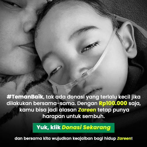 #TemanBaik, tak ada donasi yang terlalu kecil jika dilakukan bersama-sama. Dengan Rp100.000 saja, kita bisa jadi alasan Zareen tetap punya harapan untuk sembuh. Yuk, klik Donasi Sekarang dan bersama kita wujudkan keajaiban bagi hidup Zareen!