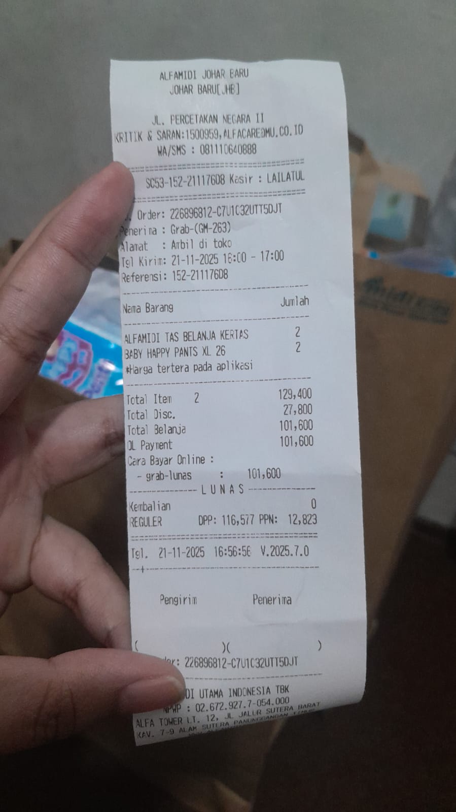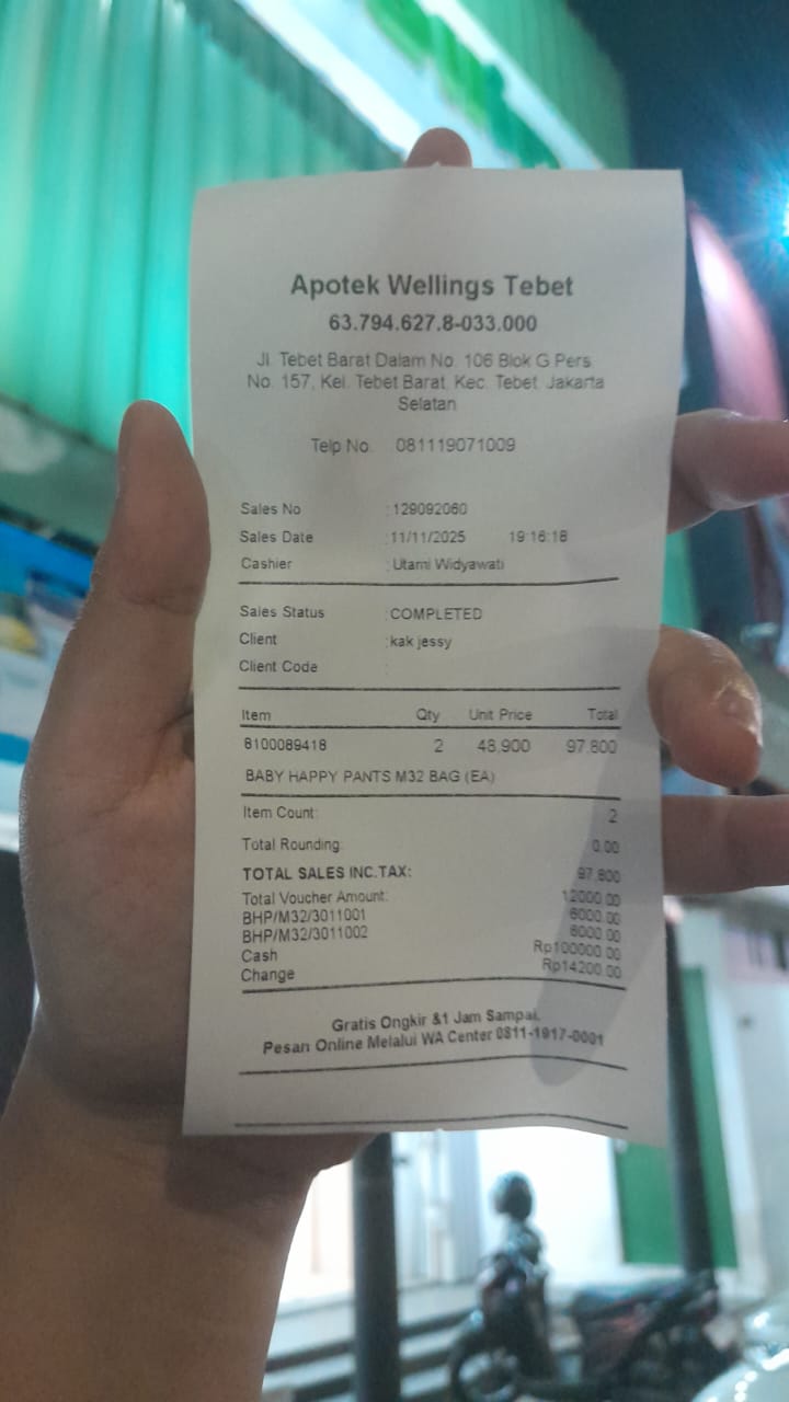 Dana digunakan untuk 1. Susu neocate junior Rp400.000 2. Pampers baby happy Rp50.000 × 4 = Rp200.0002025-11-06 10:27:06