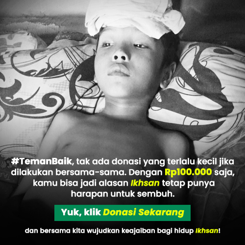 #TemanBaik, tak ada donasi yang terlalu kecil jika dilakukan bersama-sama. Dengan Rp100.000 saja, kita bisa jadi alasan Ikhsan tetap punya harapan. Yuk, klik Donasi Sekarang dan bersama kita wujudkan keajaiban bagi hidup Ikhsan!
