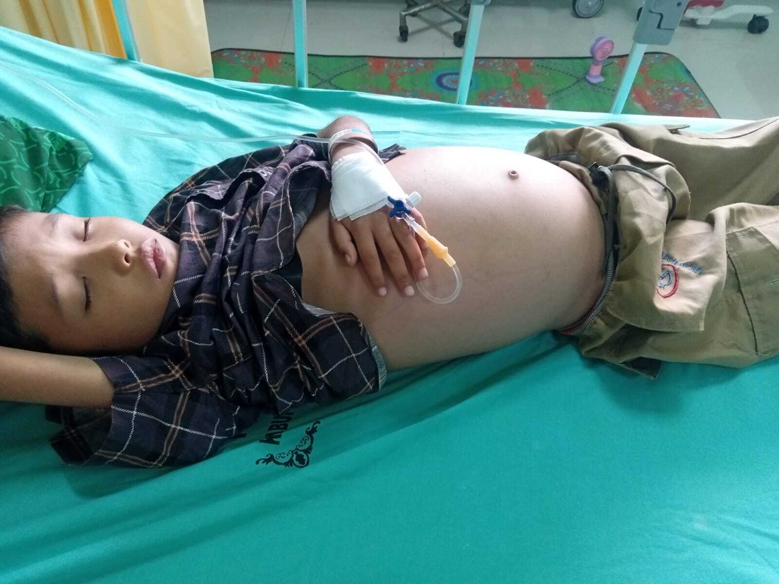 Dokter mengatakan organ hati anakku mengalami pembengkakan sehingga perutnya ikut membesar. Ada cairan menumpuk di perutnya akibat organ hatinya bermasalah. Duniaku rasanya runtuh, anakku yang masih kecil harus menanggung beban yang mengerikan mulai detik itu juga.