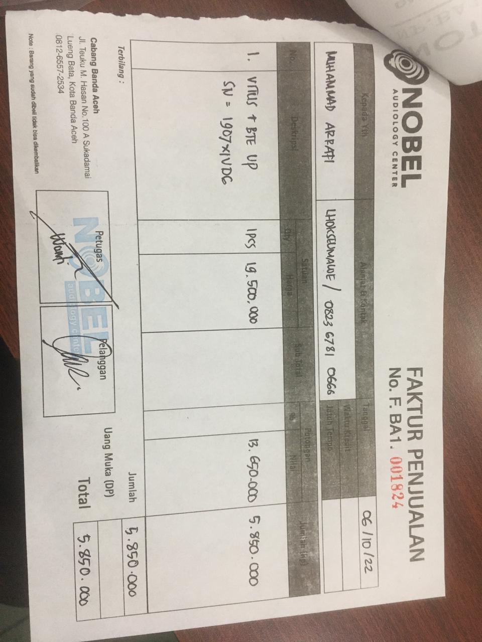 Dana akan digunakan membeli alat bantu dengar phonak type vitus+bte-up untuk telinga kananya dulu..2022-09-02 19:17:51
