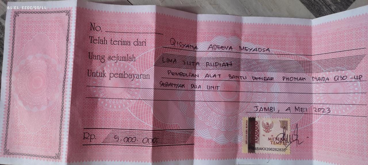 Dana digunakan untuk tambahan pembelian alat bantu dengar bekas seharga Rp5.000.000.2023-05-03 16:07:13