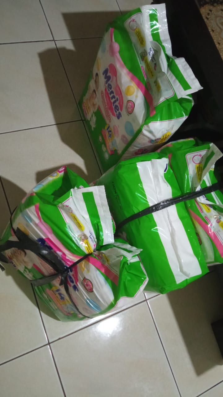 Hai #TemanBaik, ada kabar terbaru dari kami. Alhamdulillah, dana yang telah terkumpul kemarin telah digunakan untuk membeli kebutuhan pampers Zea selama satu bulan. Kami membeli 4 bal Merries Pants ukuran G di toko perlengkapan bayi.