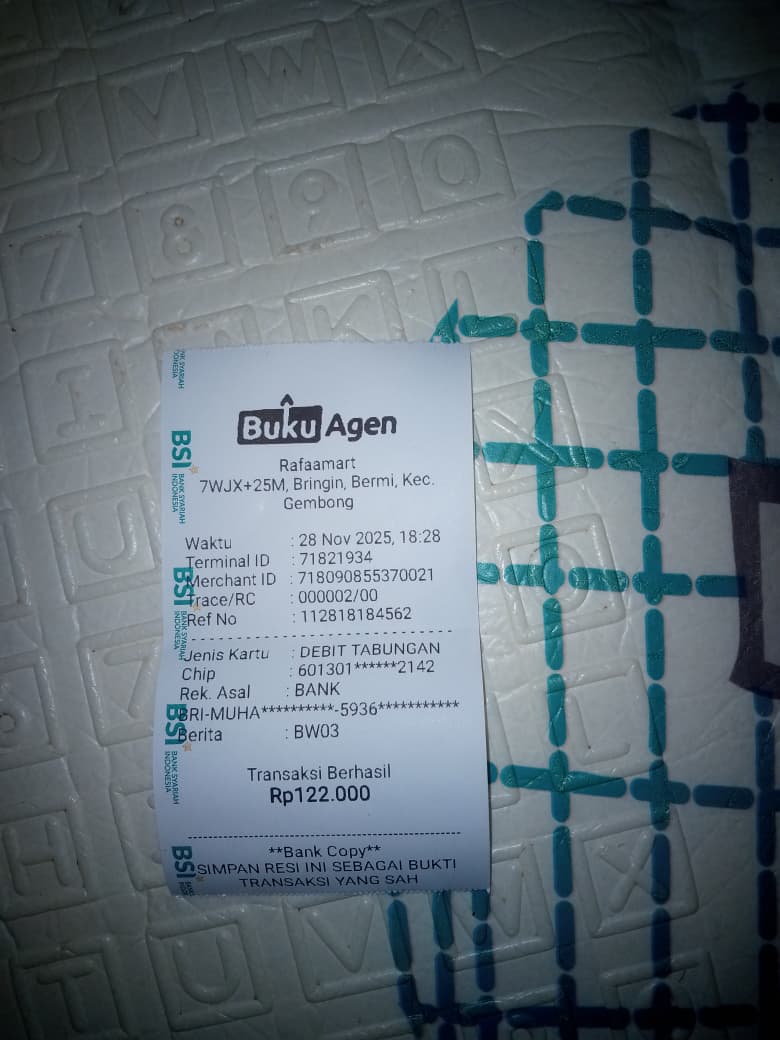 Metode pembayaran: Debit BSI (bukti transaksi terlampir)