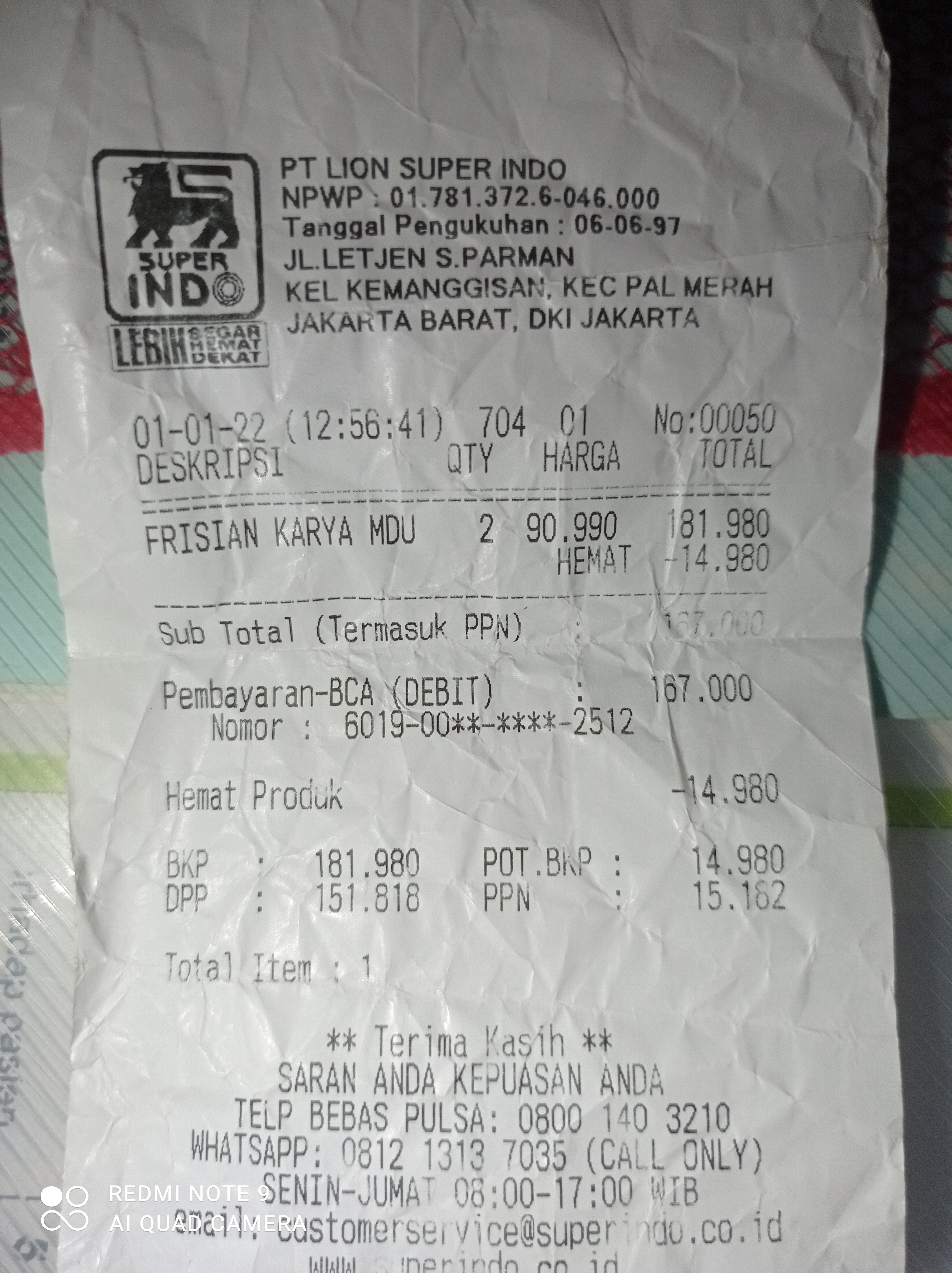 Penarikan Rp 3.334.051 saya pakai untuk membeli nutrisi pendamping yaitu pediasure karena Alvino susah makan jadi harus mengkonsumsi nutrisi pendamping pediasure.