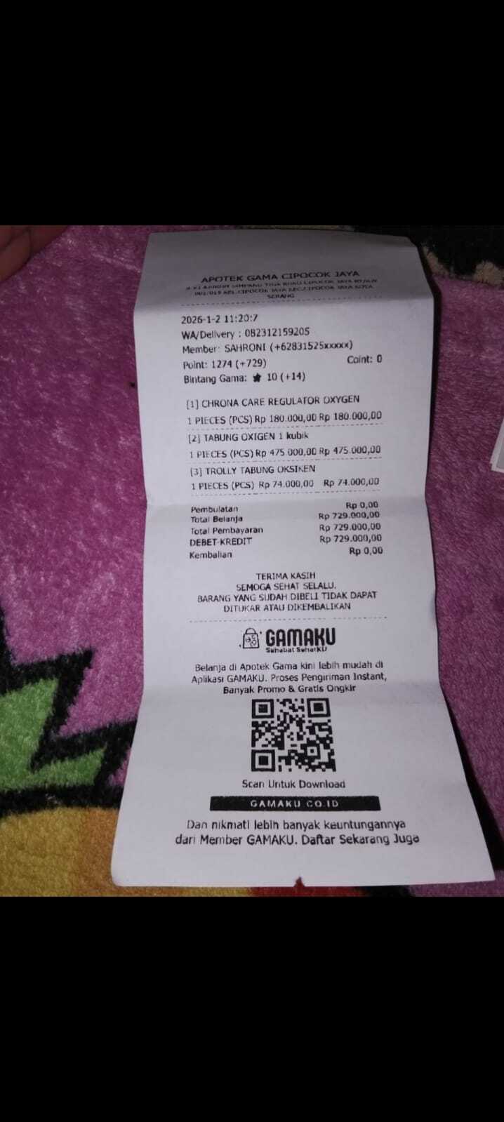 Dana digunakan untuk pembelian set tabung oksigen2026-01-13 14:28:08
