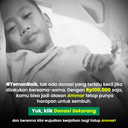 #TemanBaik, tak ada donasi yang terlalu kecil jika dilakukan bersama-sama. Dengan Rp100.000 saja, kita bisa jadi alasan Arjuna tetap punya harapan untuk sembuh. Yuk, klik Donasi Sekarang dan bersama kita wujudkan keajaiban bagi hidup Arjuna!
