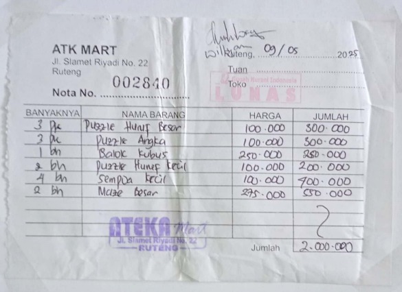 Dana digunakan untuk 1 Pengadaan Fasilitas Buku Rp4.227.614 2 Alat Permainan Edukatif Bagi Anak-Anak Rp1.761.506 3 Keberlanjutan Program Rp1.056.9032025-03-06 09:05:13