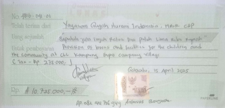Bantuan yang terkumpul dari #TemanBaik telah digunakan untuk pengadaan buku bacaan bagi anak-anak dan masyarakat, pembuatan rak buku untuk pojok literasi, serta pembelian alat permainan edukatif guna mendukung kegiatan belajar.