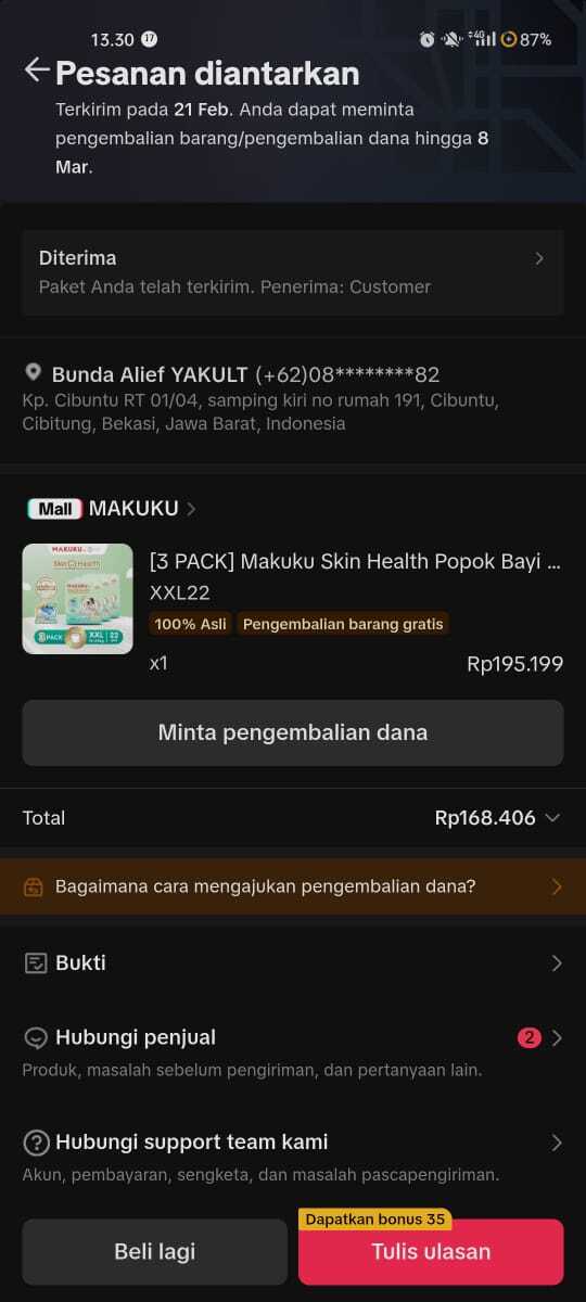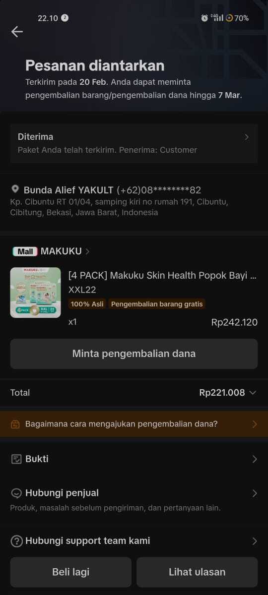 Dana digunakan untuk 1. Susu healthy way Rp. 99.000 x 5dus= Rp 495.000 2. Pampers makuku skin health 2 bal Rp 110.0002026-01-09 09:58:49