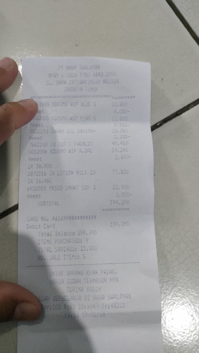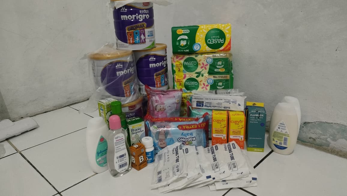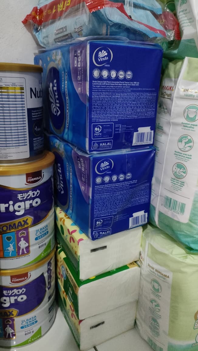 Dana bantuan dari #TemanBaik digunakan untuk pembelian susu, tisu basah, pampers, serta tisu kering.